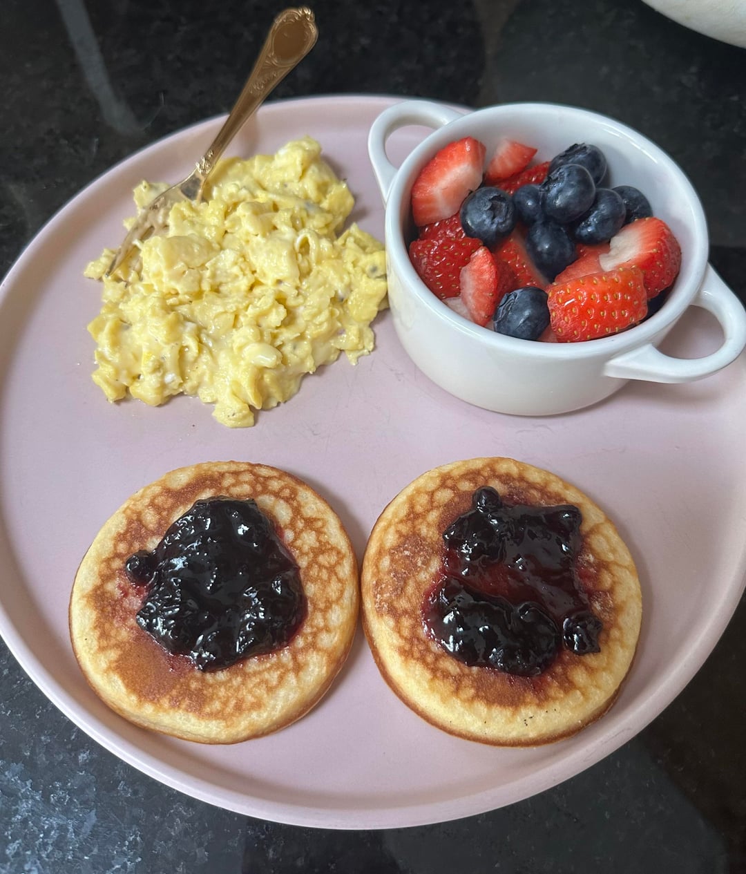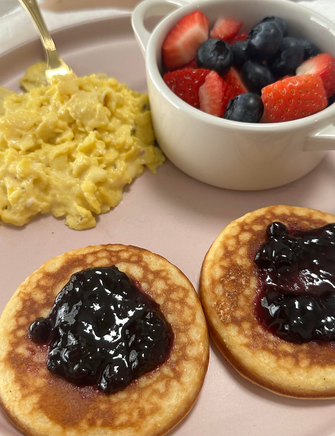 Creamy scrambled eggs with a splash of half & half and American cheese, Trader Joe’s griddle cakes with Bonne Maman blueberry preserves, and fresh strawberries & blueberries 🍓🫐 by Crescent__Luna 1 Comment Fuzzy_Welcome8348 5 hours ago Looks very comforting 😊