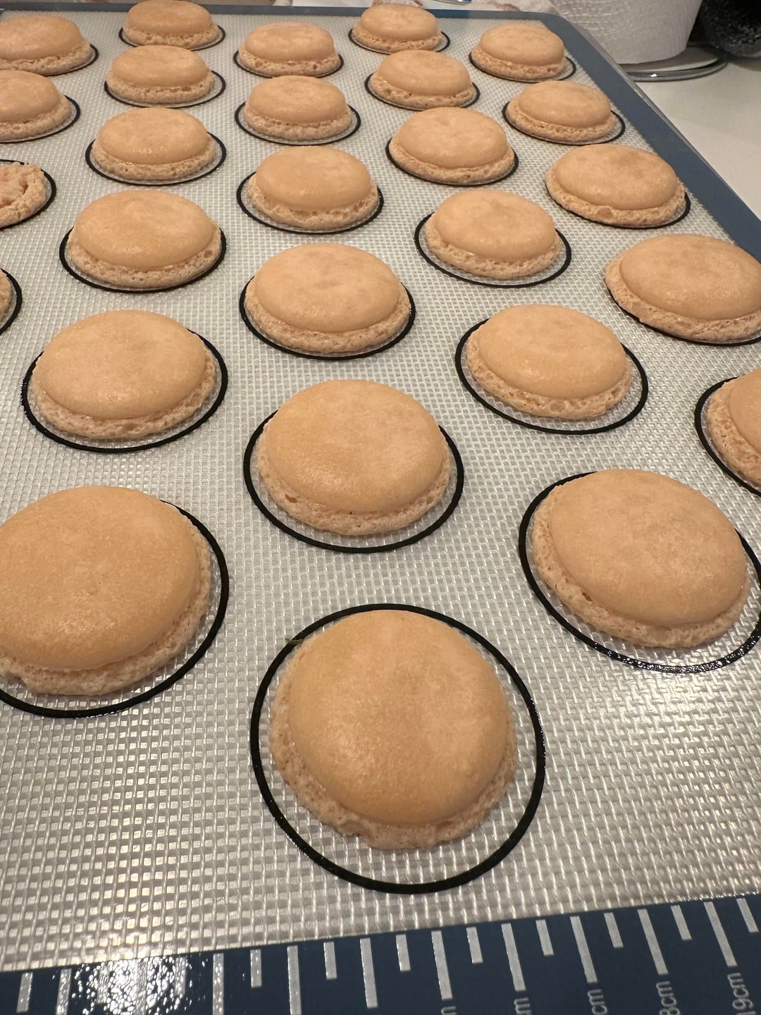 Spread out/ruffled feet typically point to over-macaronaged batter.