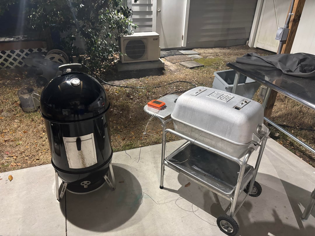 Finally got me a WSM. Last week I got an 18” WSM for $40 dollars in great condition. Today I got a 22” WSM with Cajun Bandit door and Hinged lid for $175. Took patience and just looking but I’m happy. Now I just need a Weber Ranch Kettle. Side note never cooked on a PK grill and saw one for $150 I figured had to try it out and see what fuss is about. I got a 22” Weber performer to compare it to which was my first grill 15 years ago. My name is DrFeelGood and I’m an addict…