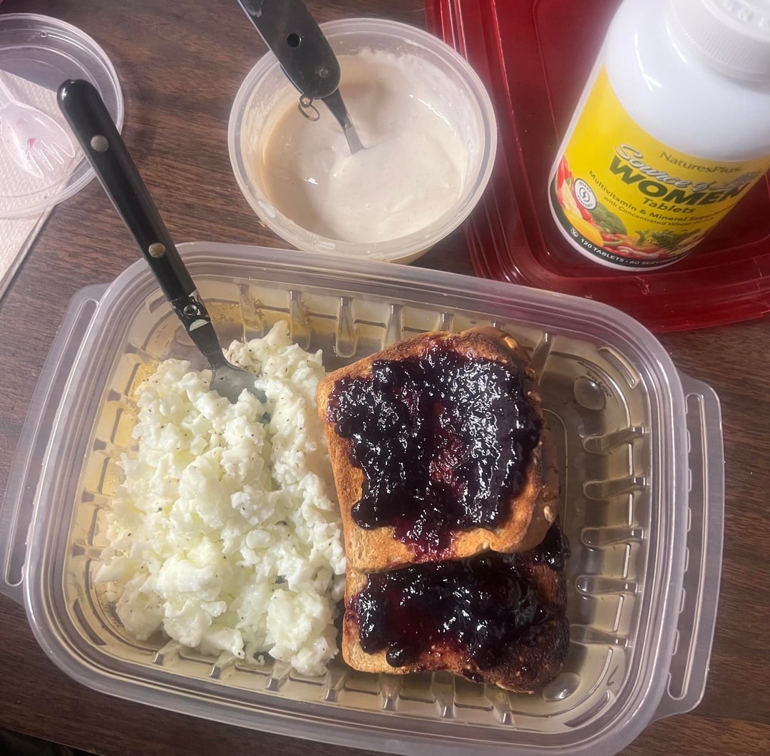 Breakfast : Whipped low fat cottage cheese with maple syrup