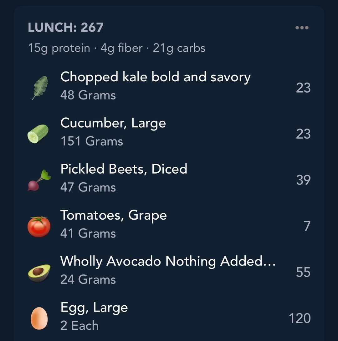 Those eggs look so good! A tsp of olive oil and a splash of vinegar make a great salad dressing for <50cal