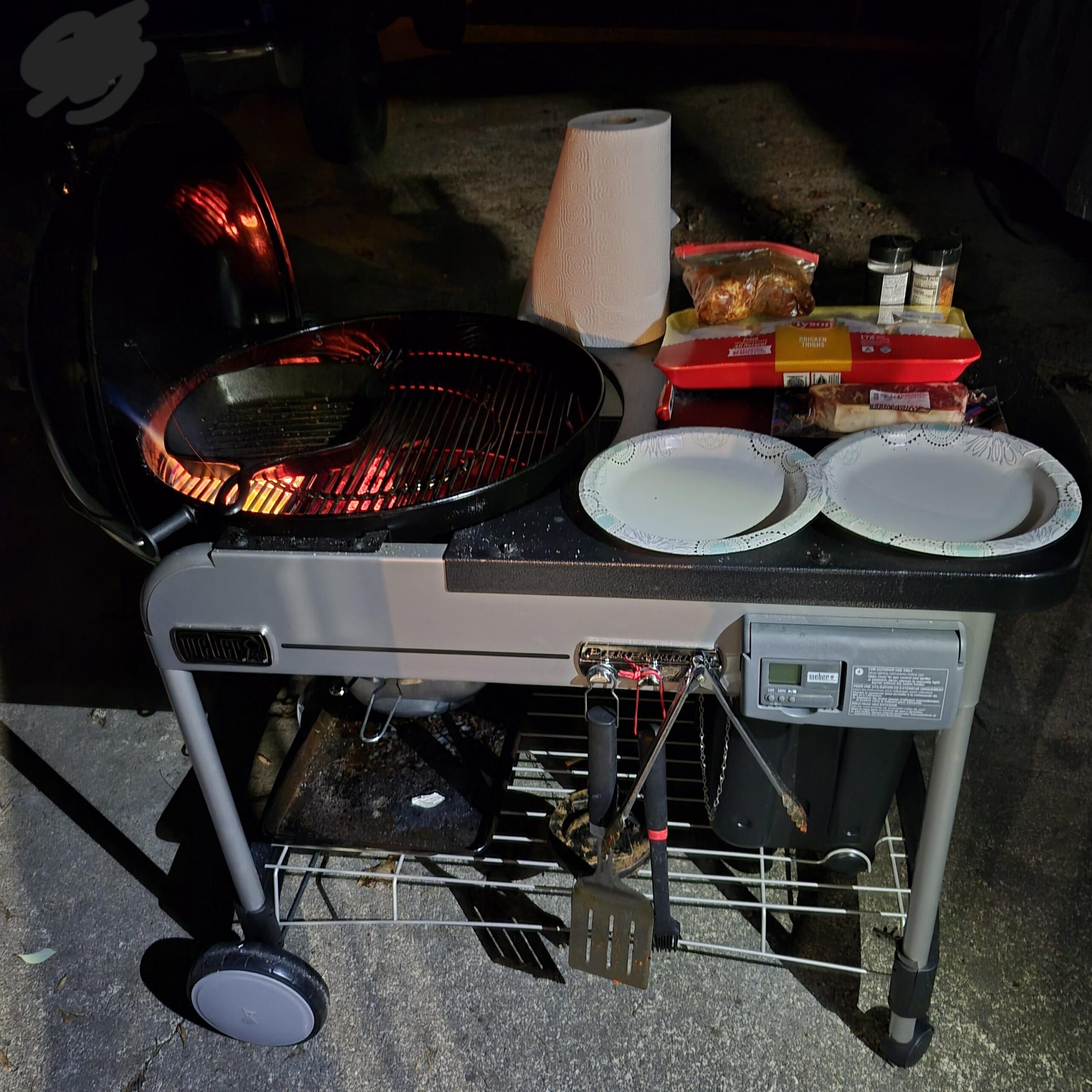 I use the bin for storing my firestarters and other accessories. I also own the Q+, 26 Master Touch, Jumbo Joe and Baby, and a 22 Master touch. Giving the 22 away to a family member so upgraded to the Performer. 10/10. I have the adapter from Amazon to hookup a 20 cylinder and the charcoal chimney starts faster than ever. The metal table is slick.