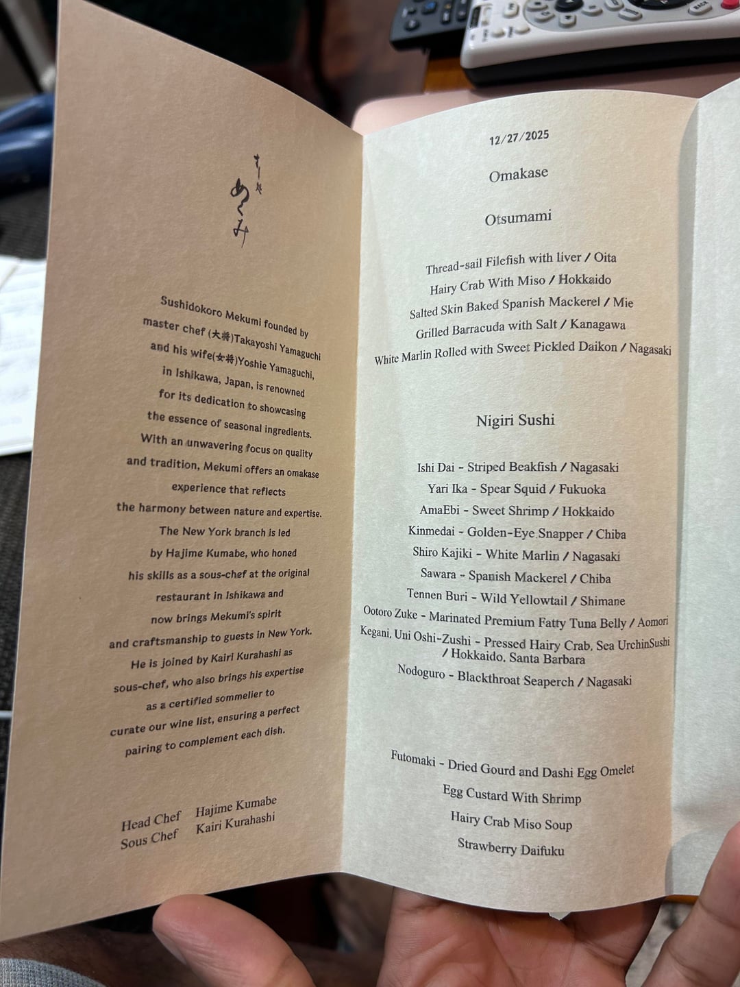 Overall the meal was solid compared to other high end omakase in ny. For nigiri my favorites were the shrimp, Spanish mackerel and blackthroat. These typically tend to be my favorites throughout most omakases. The standout dish was by far the white marlin rolled in vinegar daikon(pic 5). Best dish of the night by a mile. It added a good amount of sweetness to the fish. I went dec 2025 and the price was $300(before tip). Starting January they raised it to $400. Disappointing because I think it didnt stand out enough to warrant the price increase to that of noda, joji etc. And for those who dont drink alcohol, they have house made ginger ale made from the ginger they use for the meal. Chef was really nice and didnt mind conversation which I always like.