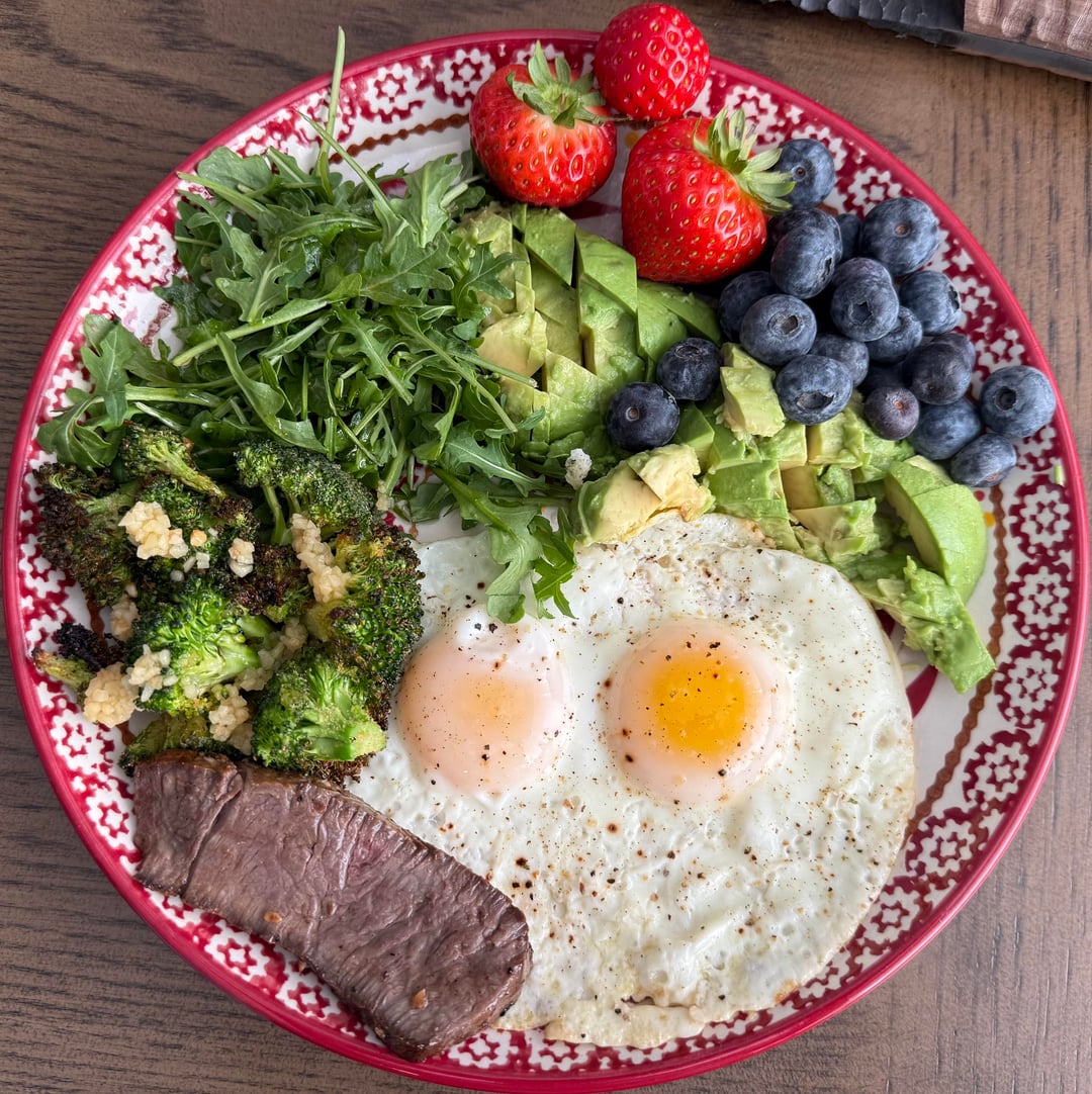 Pretty simple prep to eat well. I pour olive oil with lemon juice over my arugula and broccoli. by DeadrthanDead 1 Comment Fuzzy_Welcome8348 3 months ago Every plate looks gorgeous!!