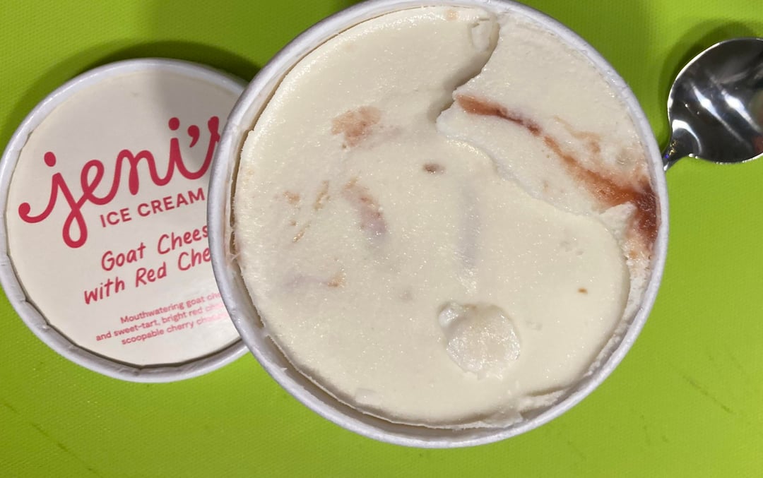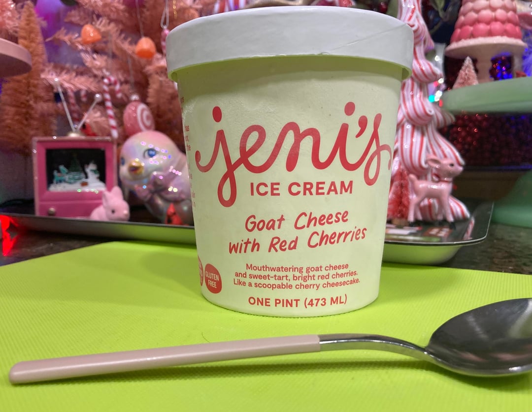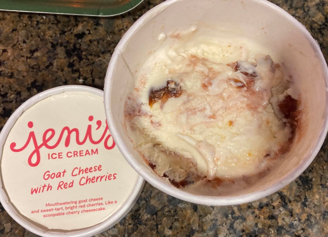 Jeni's review No. 12: When this expensive new brand called Jeni’s Splendid Ice Creams started rolling into fancy stores around here maybe a dozen years back, this is the first flavor I remember seeing. As a cherry fiend, I was immediately intrigued. But goat cheese? I like it well enough on an appetizer board, but in a pint of ice cream? It seemed a risky proposition given the price tag. Cut to 12 years later. The flavor seems to have lost its popularity. Maybe it’s pricier to produce. Maybe Jeni’s is bored with it. Whatever reason, once I got more adventurous and thought I should finally try it, I could no longer find it. Did I miss my window? Thankfully no. During a sale, Goat Cheese With Red Cherries appeared online to offer me a second chance. And I’m glad I took it. I liked it so much I bought it again when the opportunity arose.
