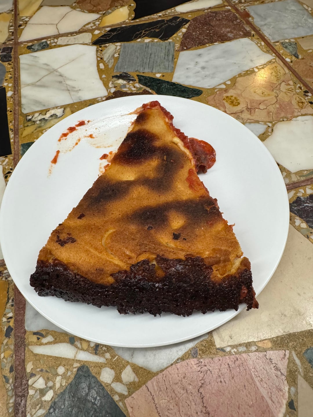 So I ordered it again, and flipped a piece for science to show everyone that the crust isn’t actually burnt. It’s intentional. They put a layer of cheese that melts between the crust and pan that caramelizes into pure cheesy goodness. It certainly isn’t for everyone, but don’t knock it til you try it. They’ve been burning pizzas for almost 60 years, so they gotta be doing something right.