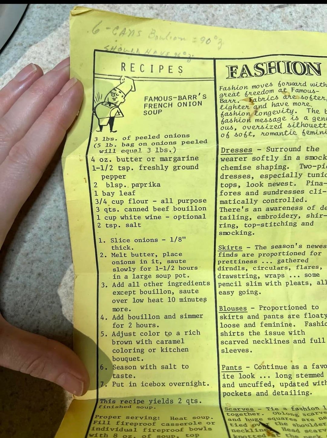 The Famous-Barr French Onion Soup recipe, as shared to Threads.