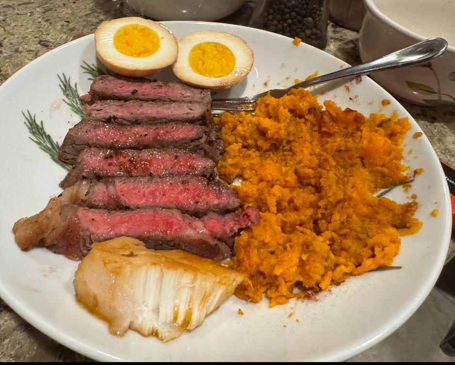 Did you marinate the eggs? They look darker on the outside. Just curious! Steak looks good 👍🏼