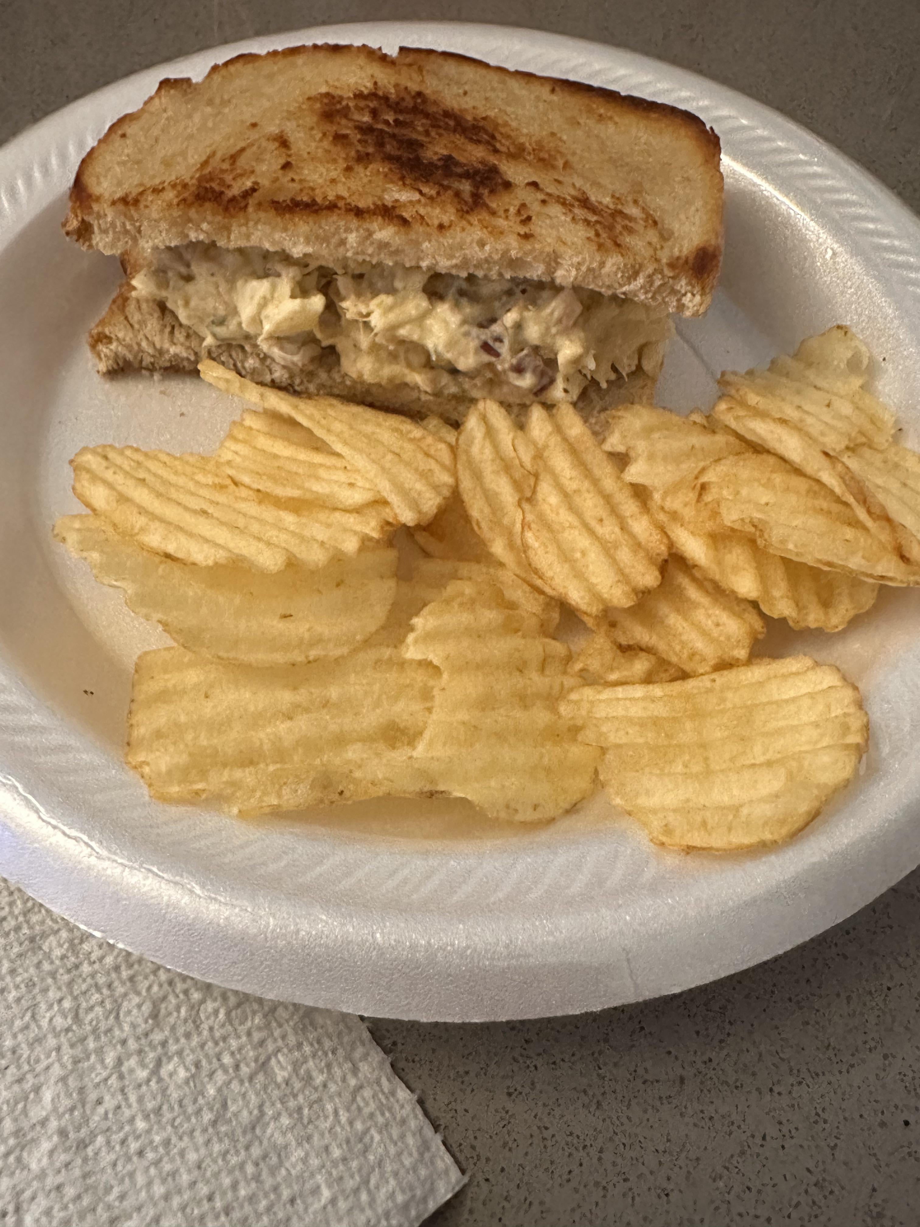 Here is my Brunch! Tuna salad on sourdough with chips! Yep on a paper plate (get mad about it). HAPPY SATURDAY!
