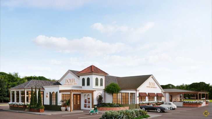42Freeway became aware of the plans via construction industry contacts/documents, which led us to an active Dolia restaurant website which features beautiful renderings of the property exterior.
