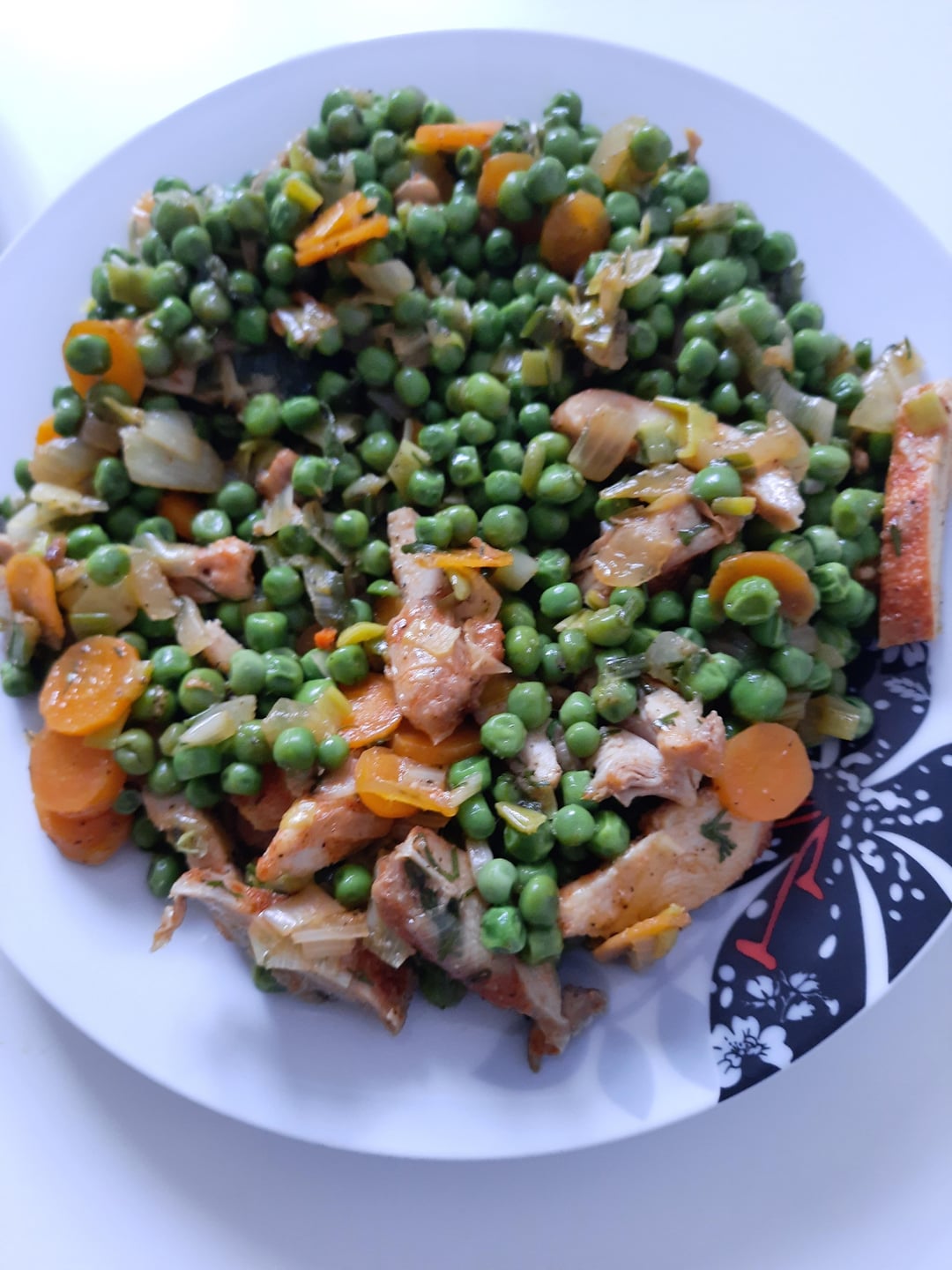 Chicken thigh (baked), frozen Peas, carrots, leek, green onion, onion, dill, salt & pepper.by Glittering-Boss-911 1 Comment hakklihajawhatever 1 week ago Such a great idea, will do it!