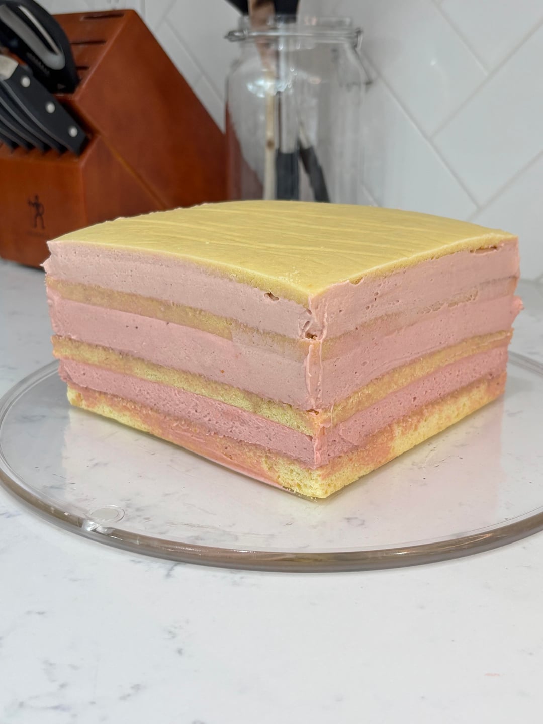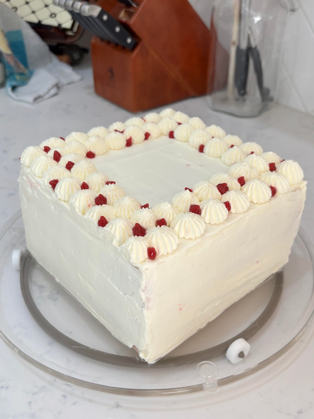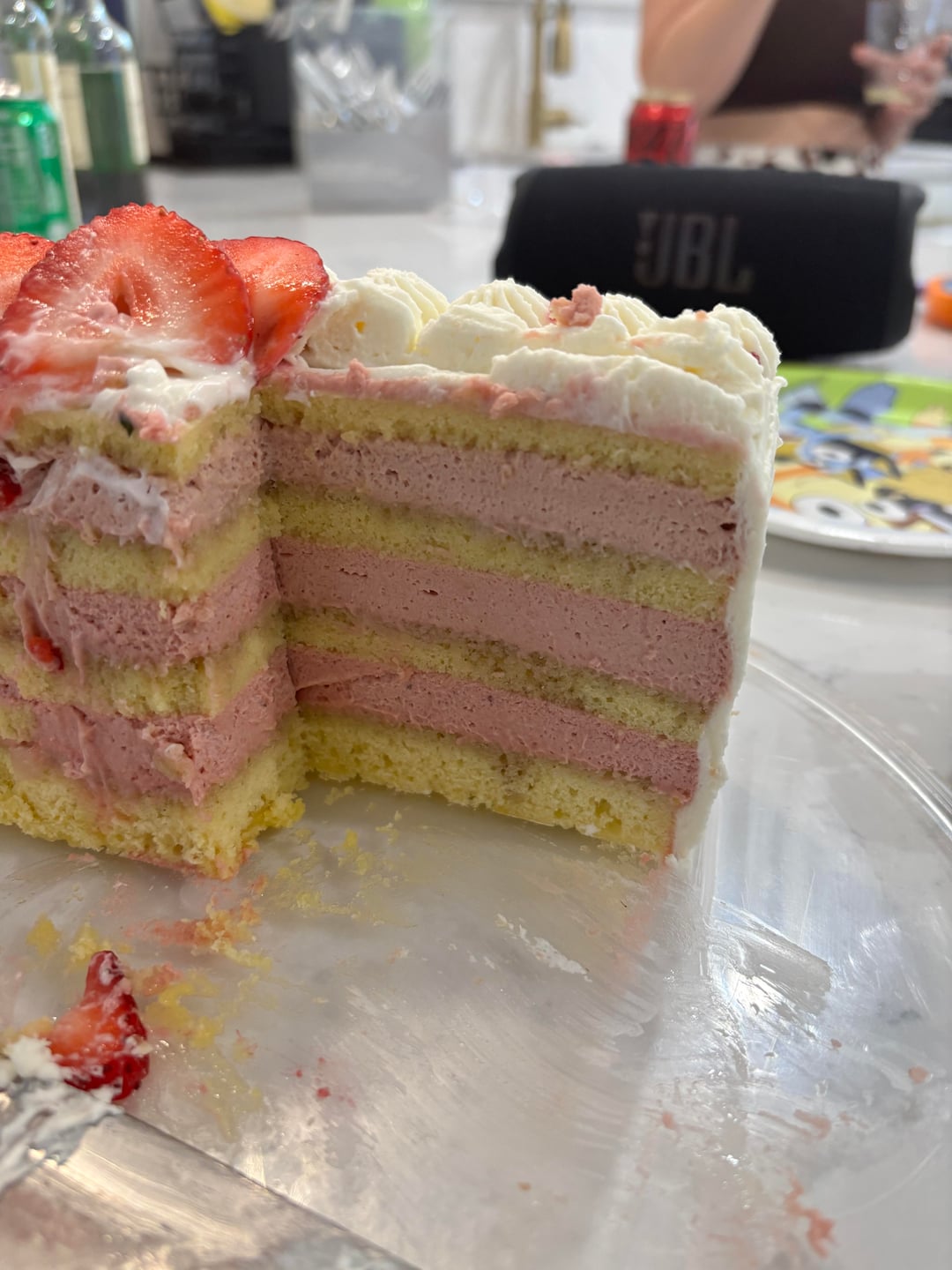 And if you're wondering, I used the microvawe ring to be able to turn the cake around while doing the frosting haha