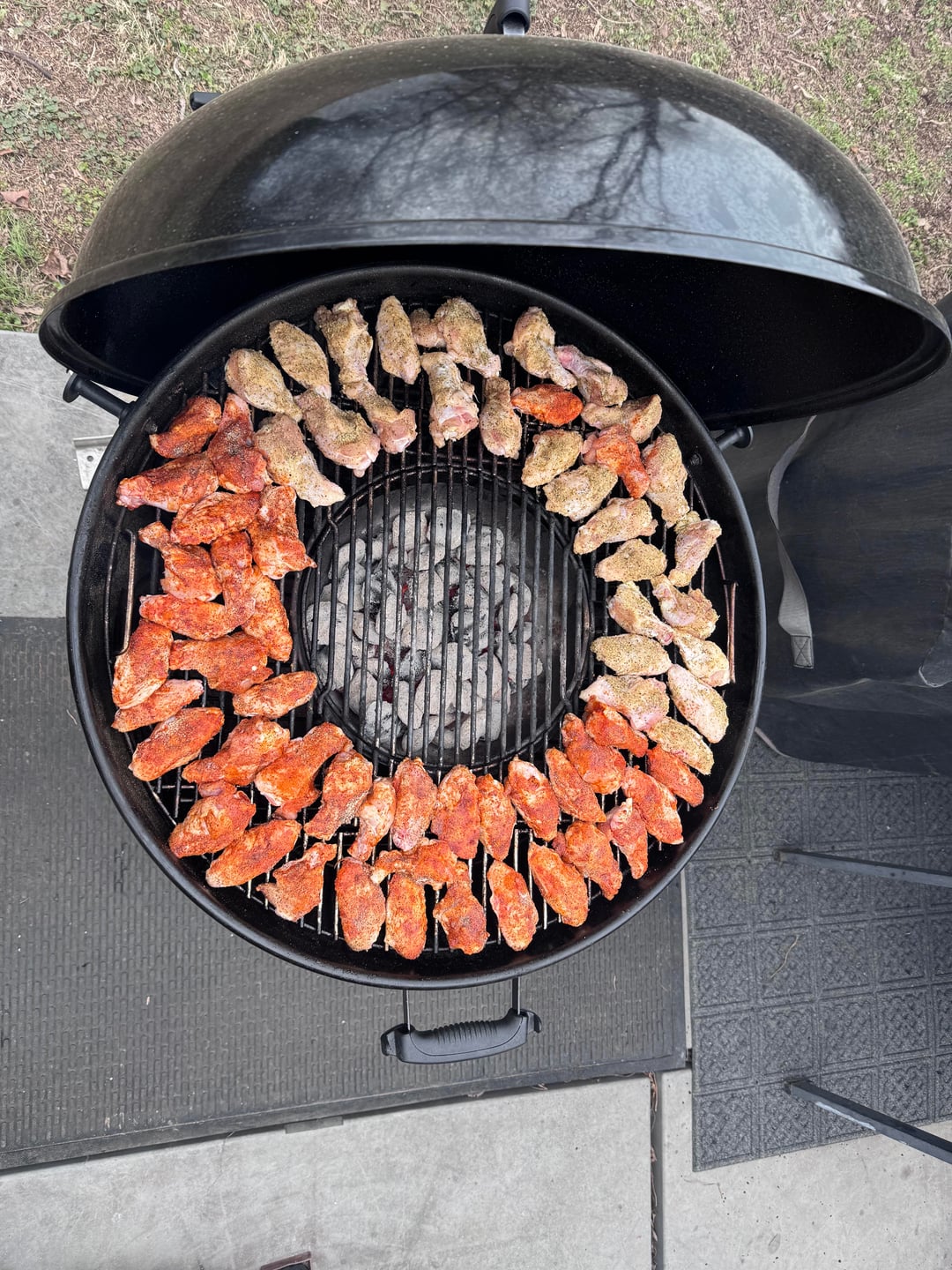 I personally like using the vortex a little more (and I really only use it for wings) Only reason is I get a little less intense radiant heat while cooking indirect and I get absolutely insane searing heat once I’m lid-off at the end to put a little char on them and tighten up the skin.