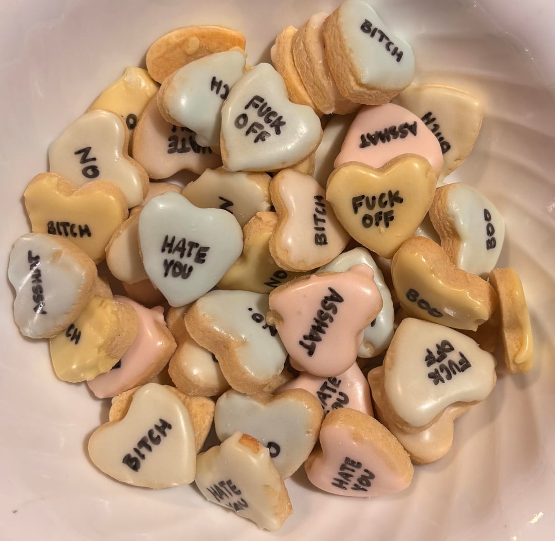 i thought the one said “test me” and i had a giggle over it when i zoomed and saw what it actually said 🤣