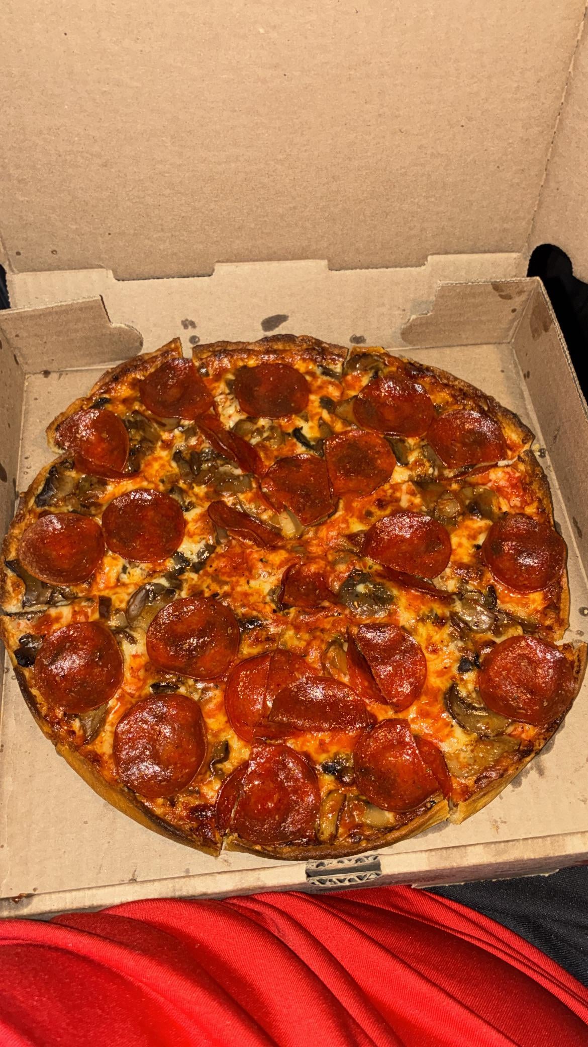 This one is pepperoni and mushrooms and it comes from my favorite place, Lynwood's in Randolph, MA