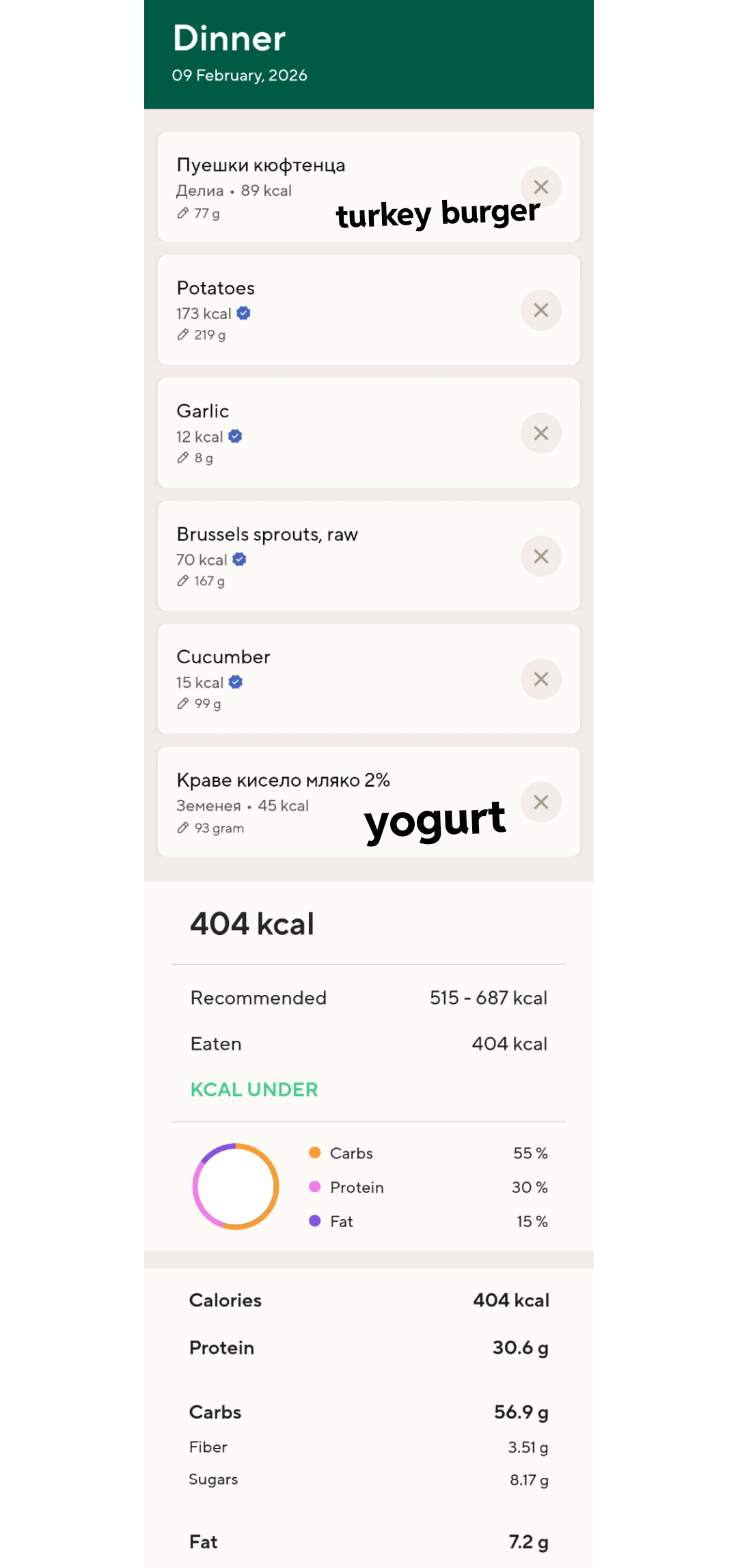 And dinner, boiled veggies, "snow white" salad, and a turkey burger 404c
