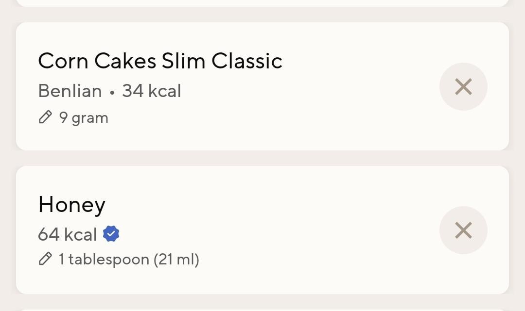 Pre-workout snack is corn thins with honey 98c