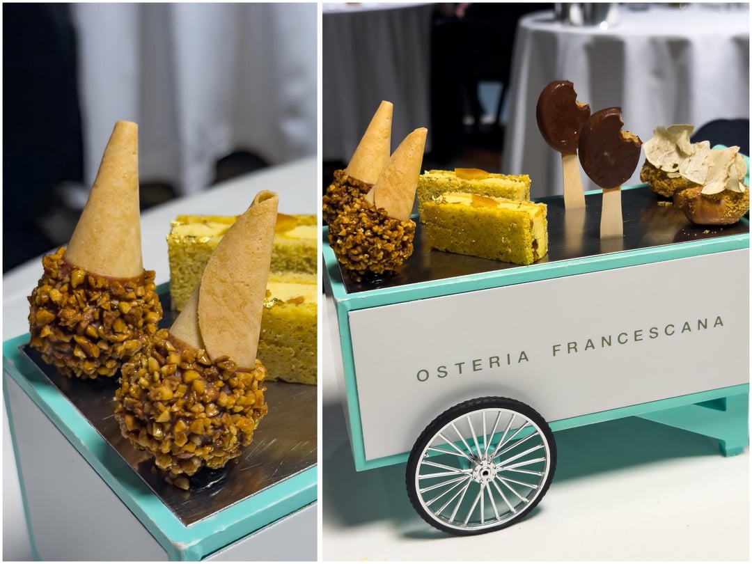 The meal concludes with a mini-dessert cart for each diner, four tastes of the mind of Massimo, more classic reinventions. A Magnum chocolate bar brings you to the beach in summertime while a chocolate cone filled with duck jus from the Jazz course is perhaps the best pairing of sweet and savory I've ever had.