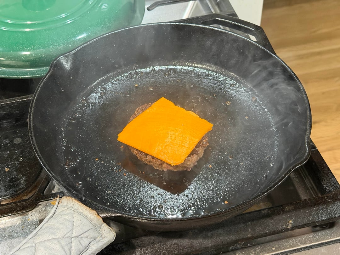 Why cook the burger in a separate pan instead of on that beautiful cast iron skillet you cooked the buns on?