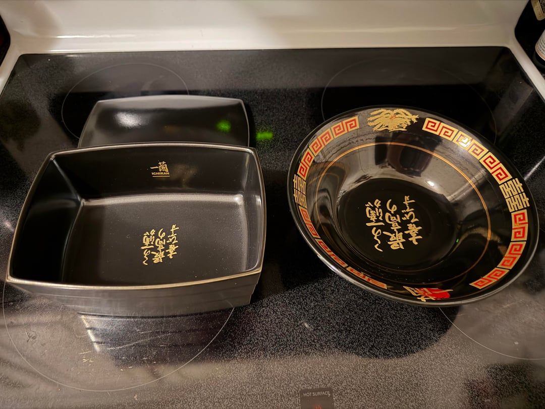 Sorry if not allowed, but I thought this sub would appreciate this! This is my collection so far of Arita Ware Ichiran ramen bowls from Japan – the Jubako style bowl just arrived today! Gifted by my wife and family for knowing I’m a nutcase for ramen lol