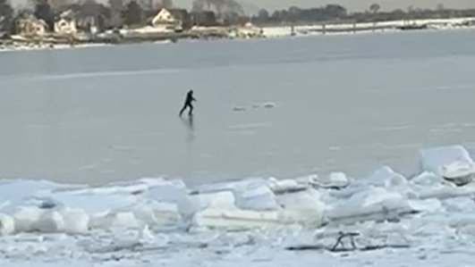 Person ice skating on Quincy Bay caught on video