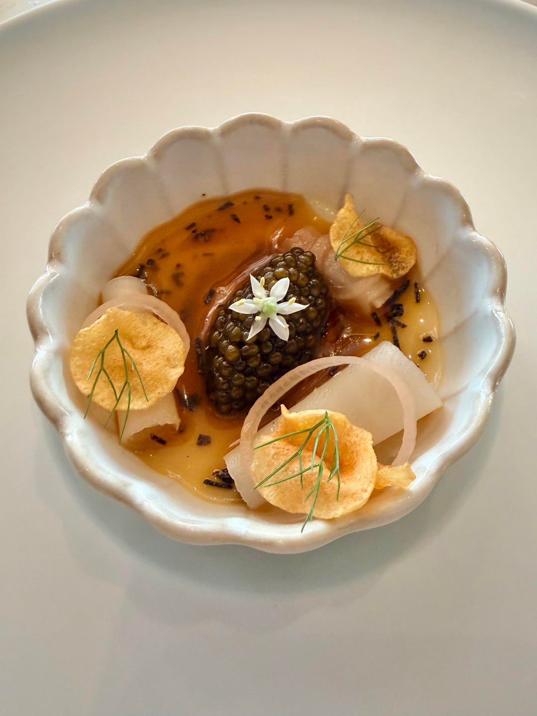 – Followed by steamed egg custard with potato chips, pickled shallots, caviar and truffle sauce, served with a piece of toast on the side (13th pic) 10/10