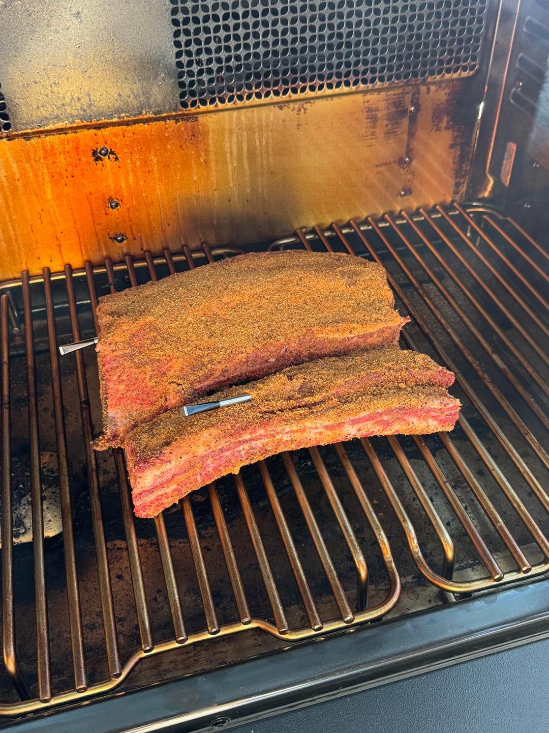 Made some Dino Ribs today. r/Traeger Timberline XL @275°F for 11 hours. Pulled at 198°F probe tender. According to recipe, should’ve taken 8 hours. I used Hickory pellets with Meat Church Holy Cow and Holy Cow Voodoo. They were delicious.