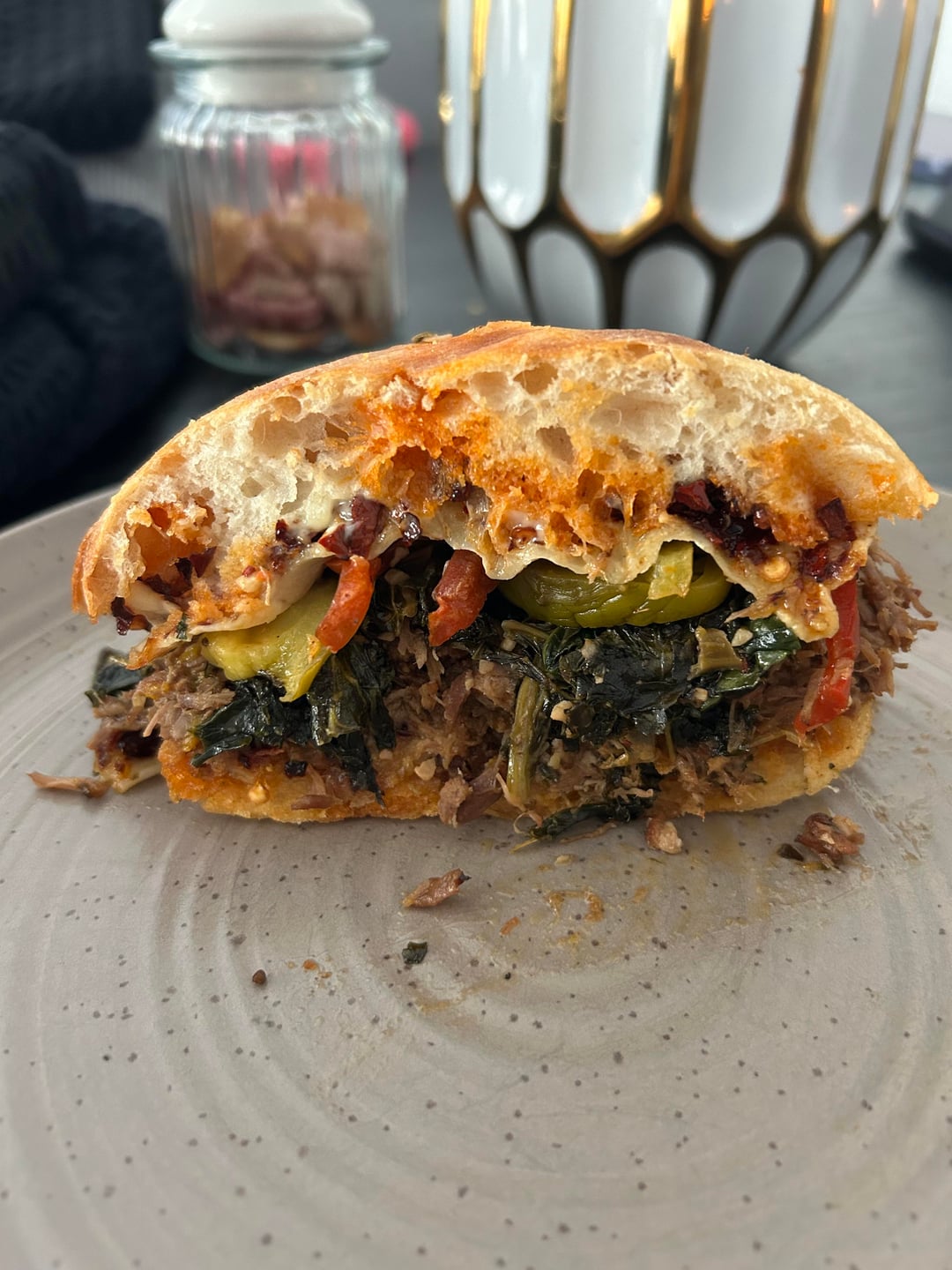 Ciabatta, mayo, chili crisp, cherry peppers, provolone, kale, pork shoulder from the instant pot and crisped up in the air fryer. Not quite a Philly traditional but it scratches the itch!by tricky6ricky 4 Comments Fluffy_File1914 4 weeks ago Yummy Greecelightninn 4 weeks ago Reminds me of a torta minus the Kale Lifeofabeard5 4 weeks ago Sounds delicious! Wtf-Jason 4 weeks ago Oh my word 🤤