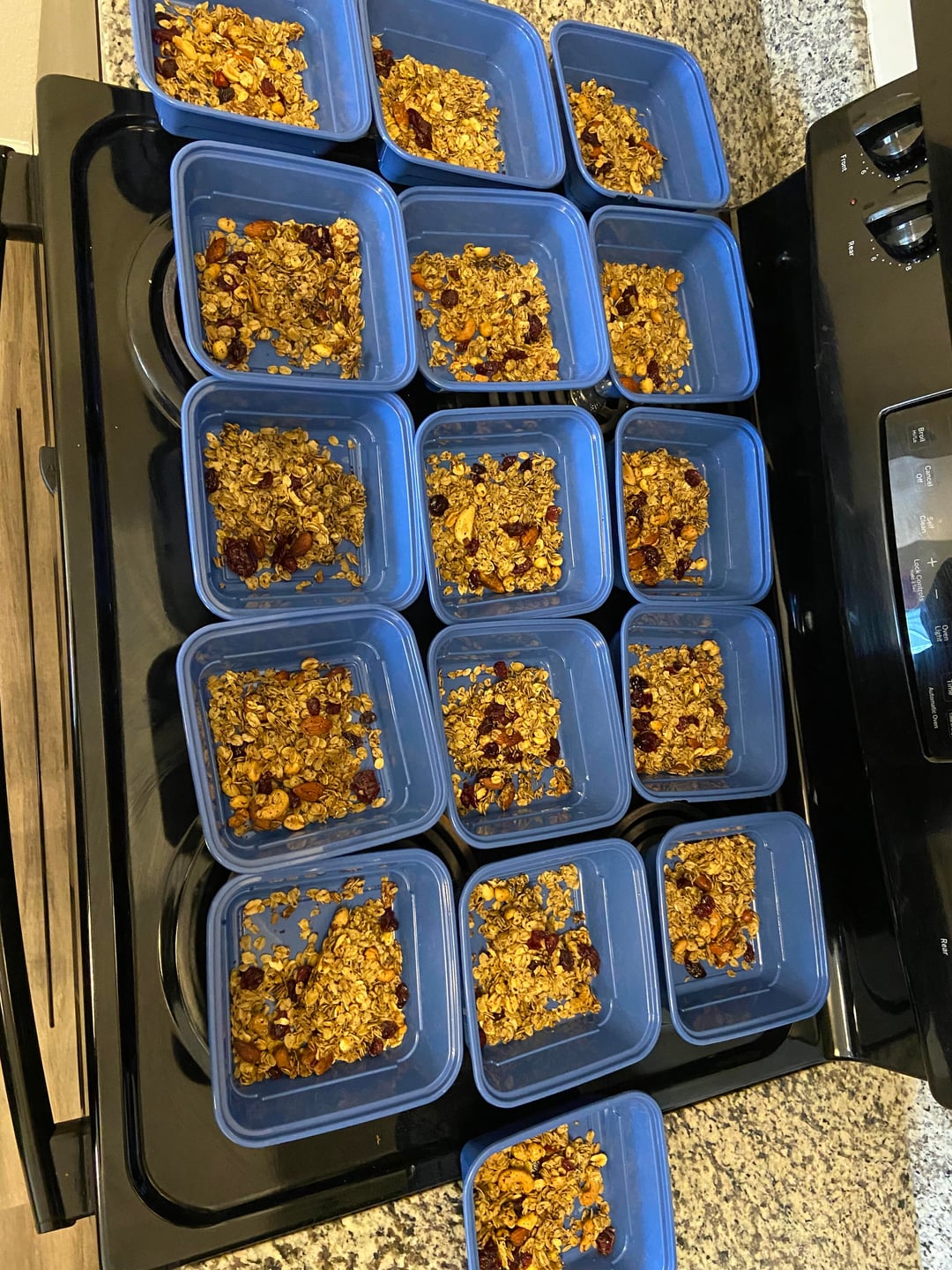 I followed the recipe exactly and used mixed raw nuts, honey, cranberries as my dried fruit, and olive oil.
