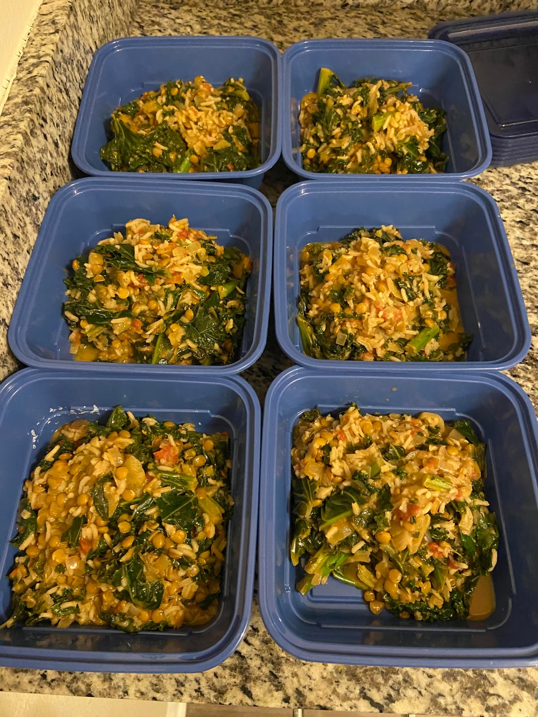 I used 1/2 a cup of green lentils and 1/2 cup of rice instead of using red lentils. I also added a full bag of fresh kale.