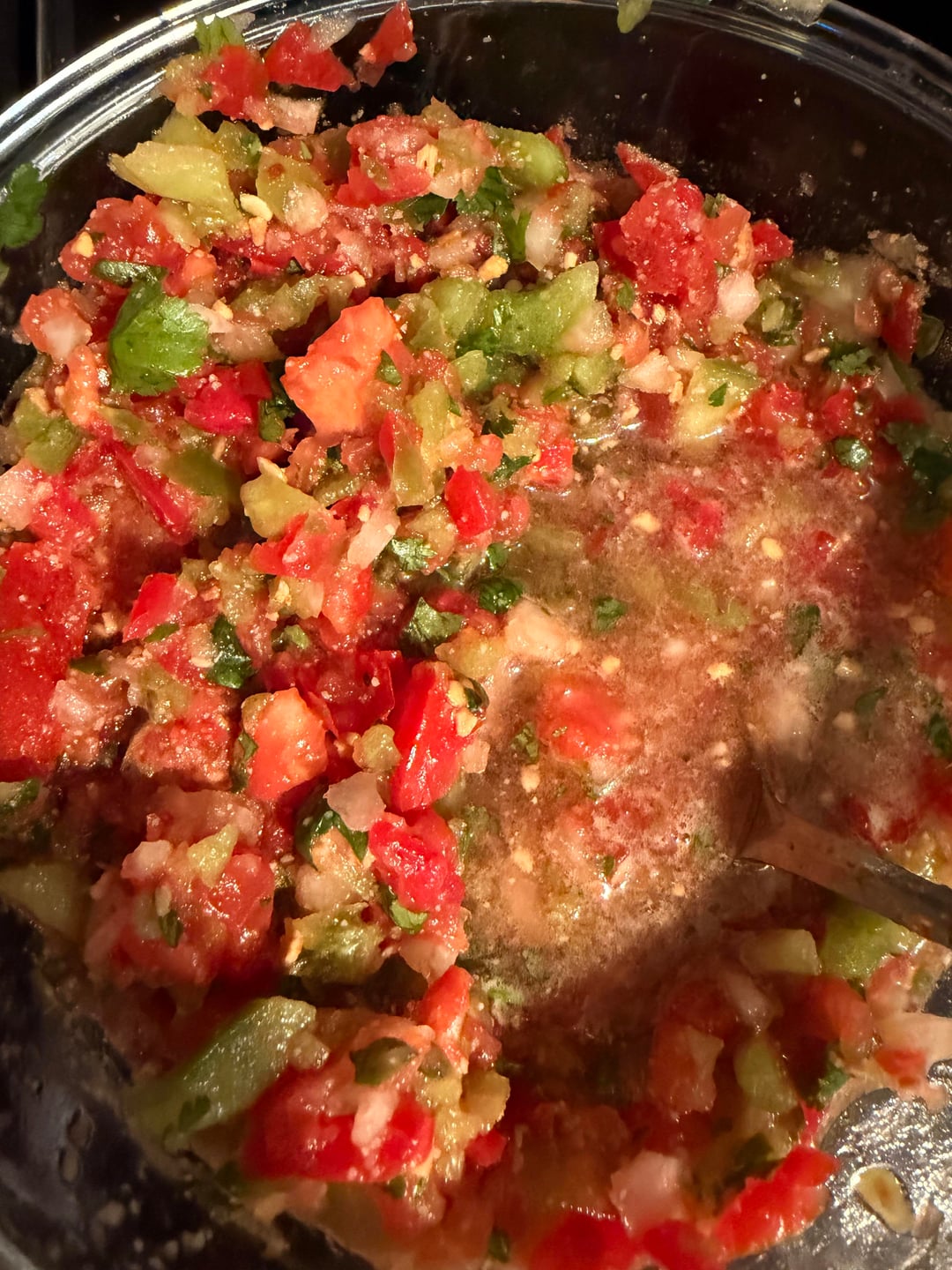 Now I mix it at a ratio of about three to one roasted salsa to pico.