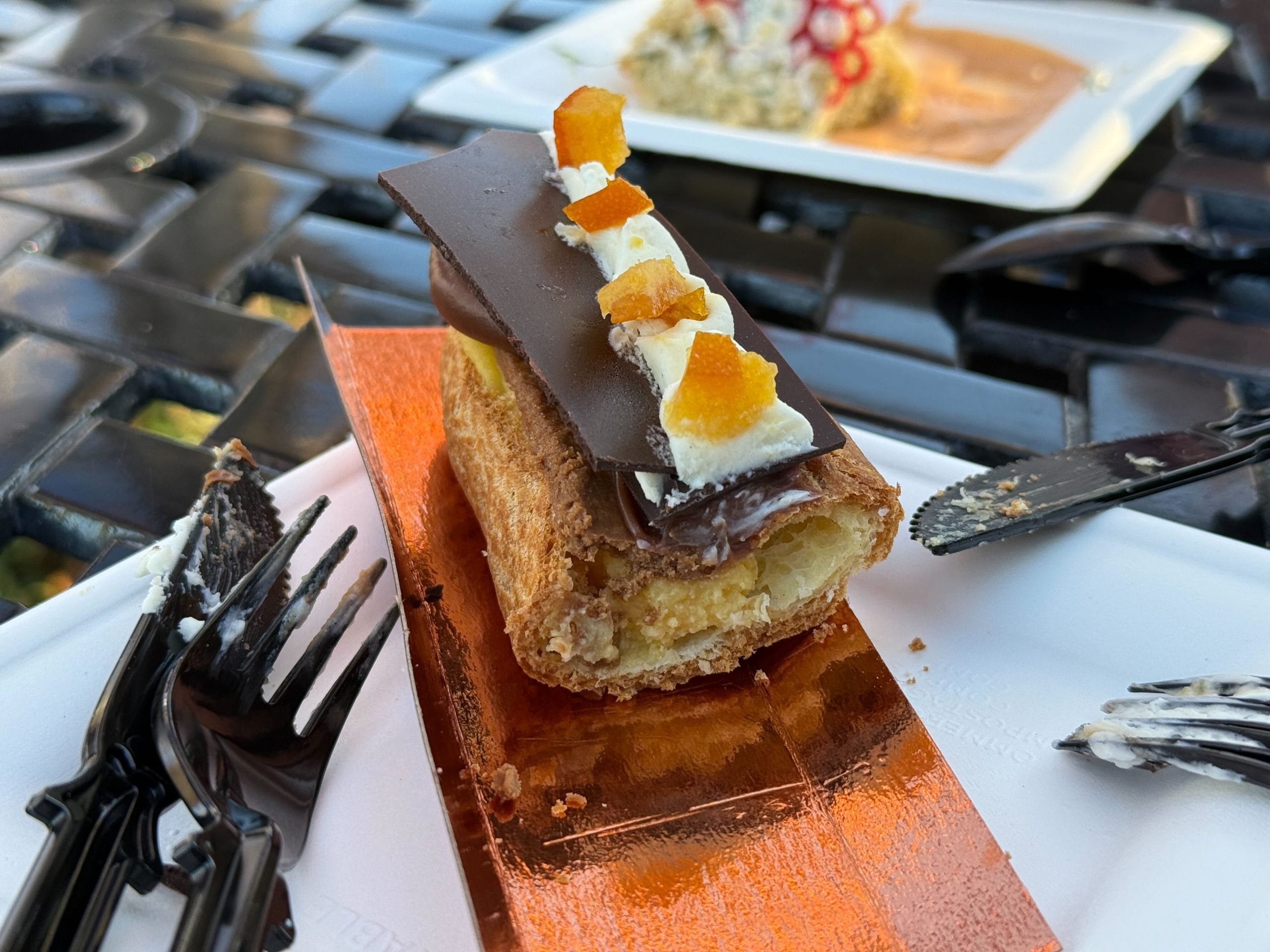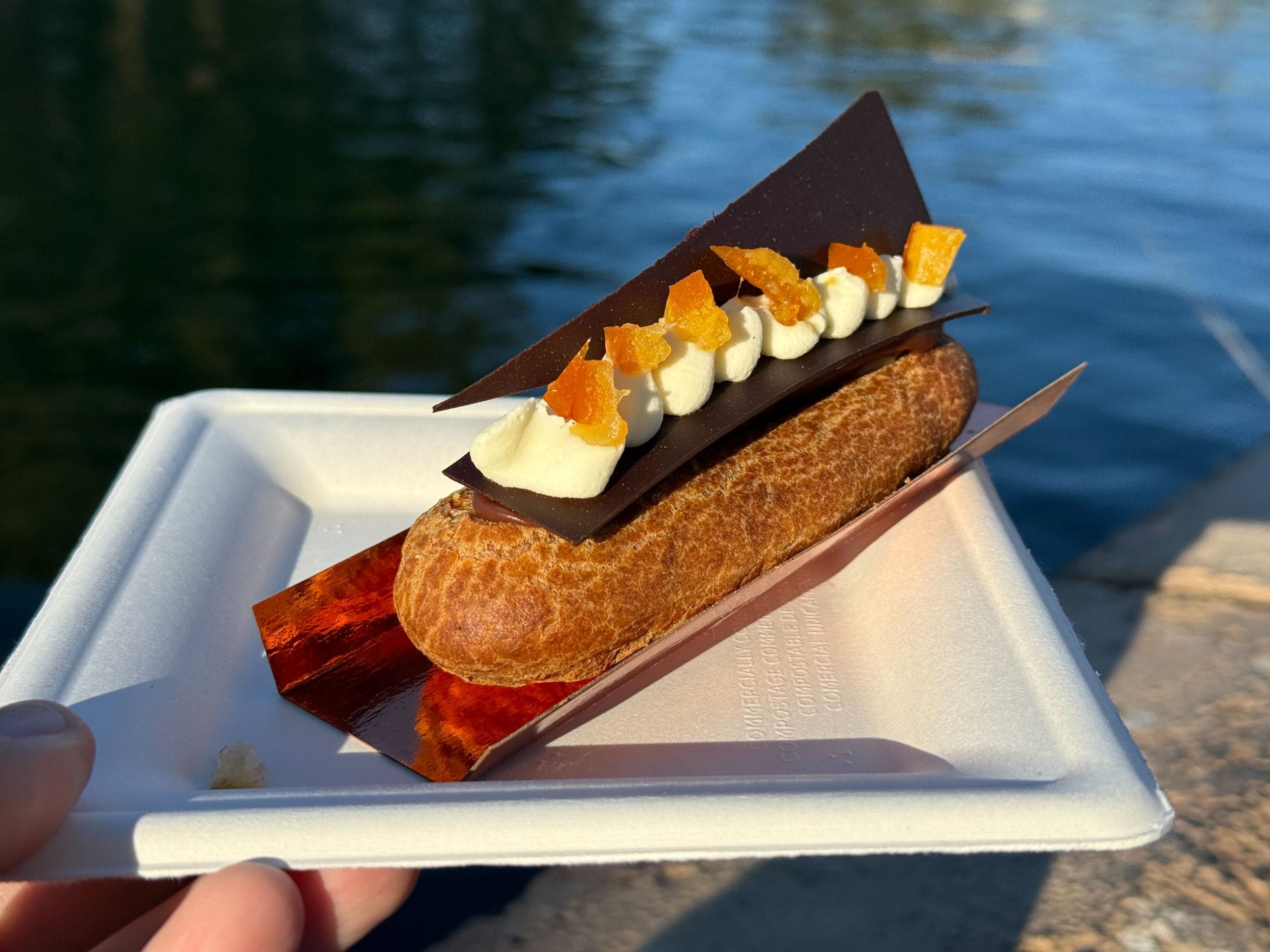 *NEW* Éclair au Chocolat et à l’Orange, Crème à l’Orange, Ganache au Chocolat, Croustillant de Noisettes et Oranges Confites: Chocolate-Orange Éclair, Orange Cream, Chocolate Ganache, Crispy Hazelnut, and Candied Oranges – $8.95