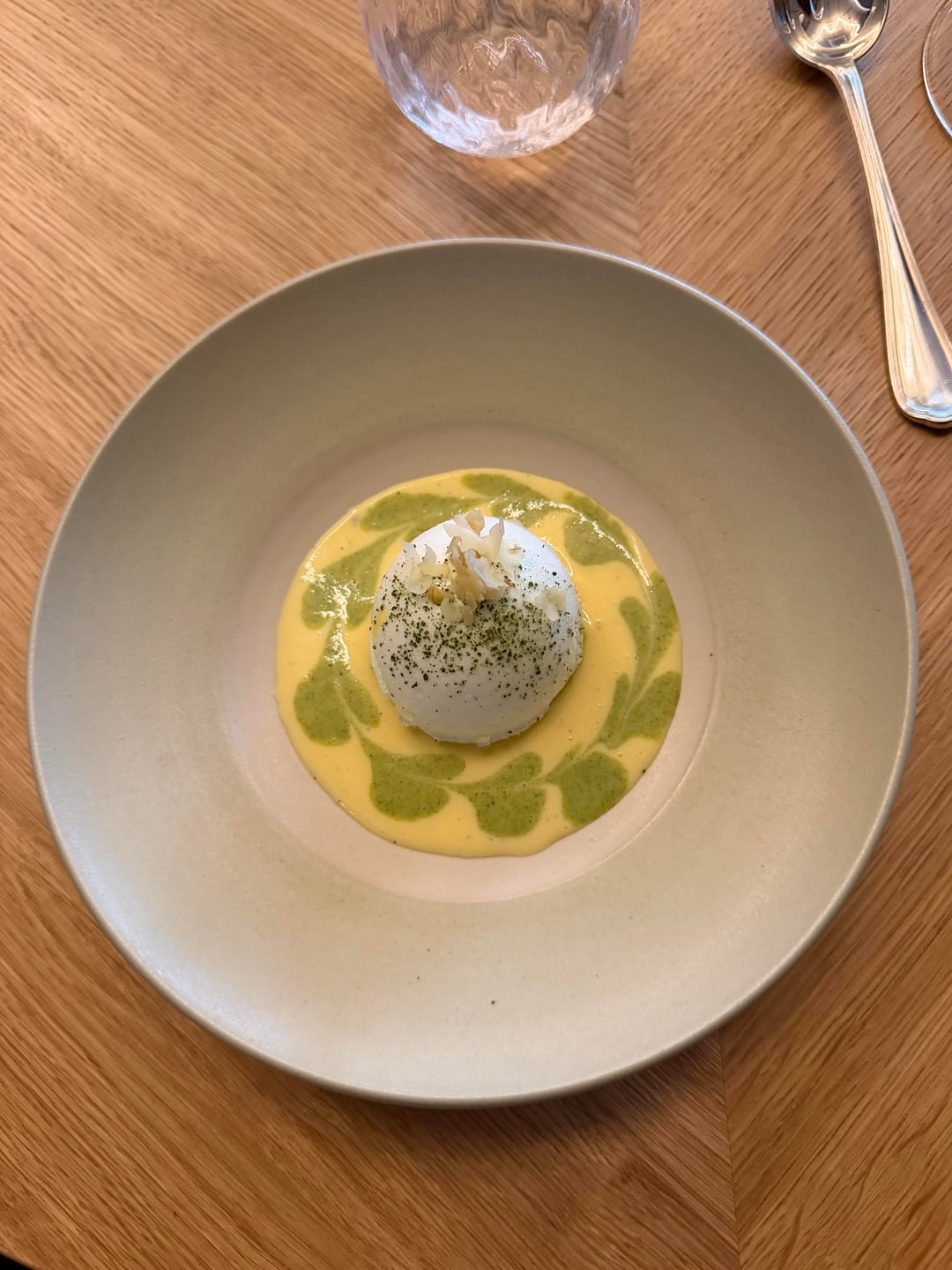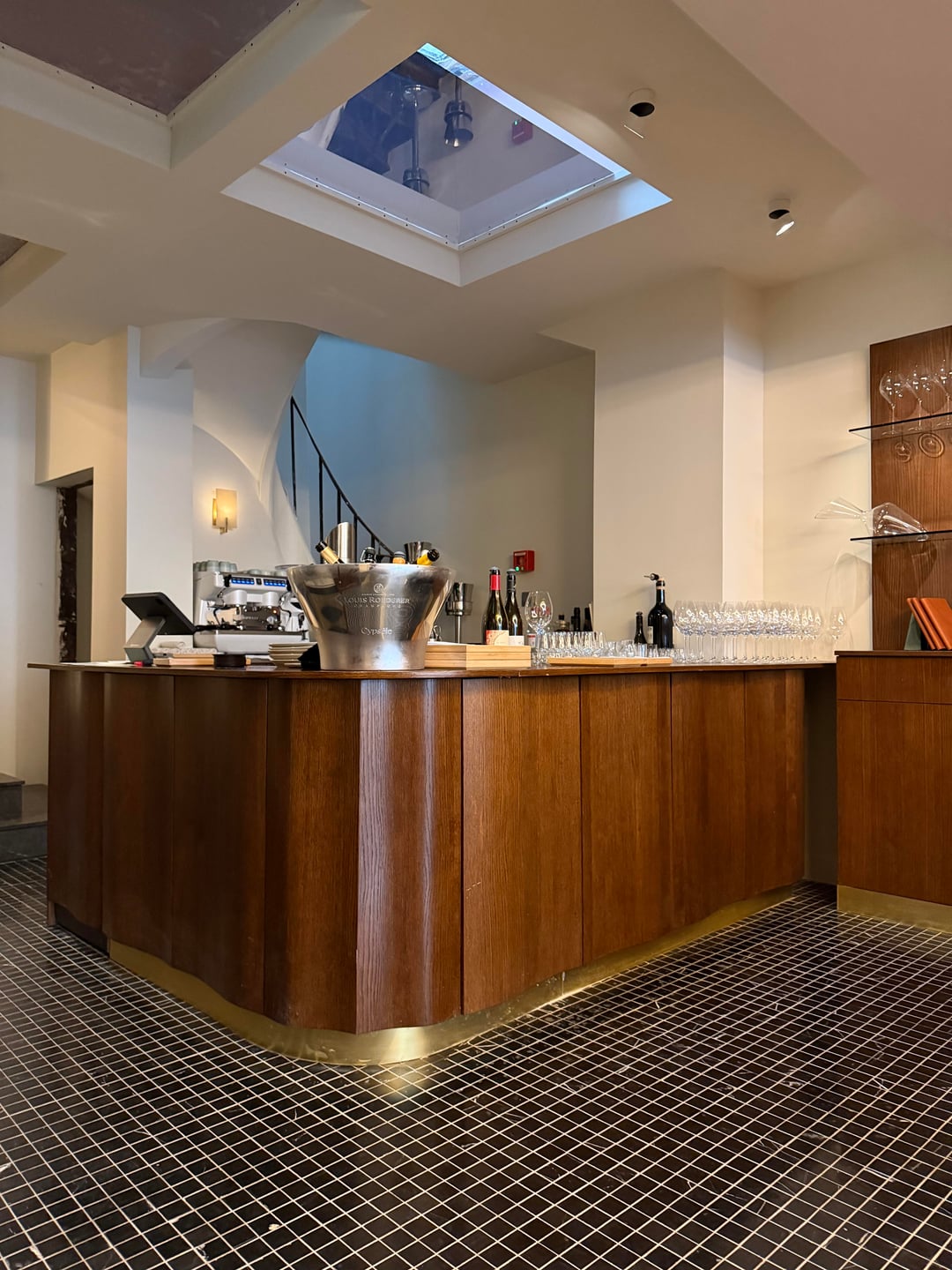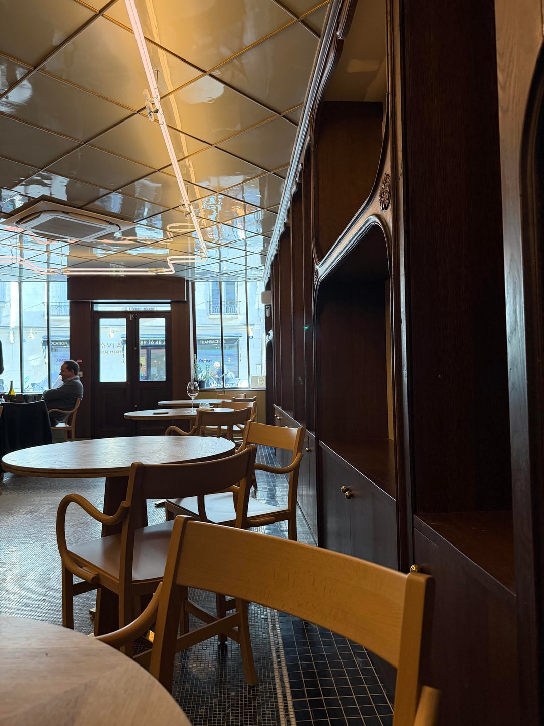 I went to Cypsèle alone for lunch and genuinely loved the experience. The location on Île Saint Louis is already charming, but the restaurant itself is truly beautiful. The architecture and interior design are striking without feeling overdone. The space was redesigned by the London based studio Nice Projects, who transformed a former pharmacy into something both elegant and warm. Historic details like the old wooden shelving and mosaic floors have been carefully preserved, while modern touches bring a real sense of calm and personality. It’s a place where you immediately feel comfortable, even when dining solo.