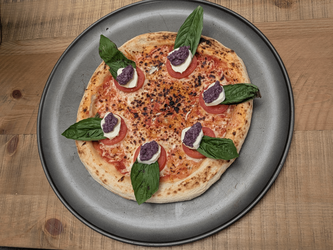 This is my version of the "caprese pizza".Tomatoes, fresh mozzarella, basil and homemade olive pesto.by SnooApples2483 1 Comment danielrmorenop 1 month ago looks a wee bit charred on the cheese but otherwise great !