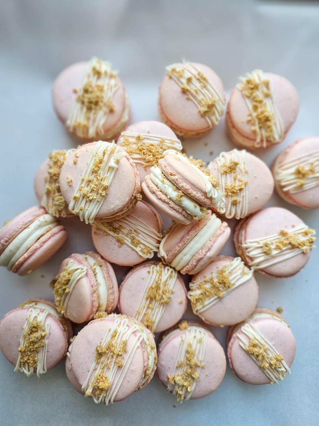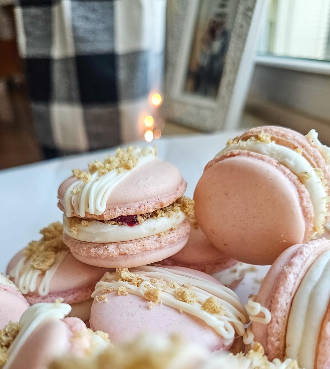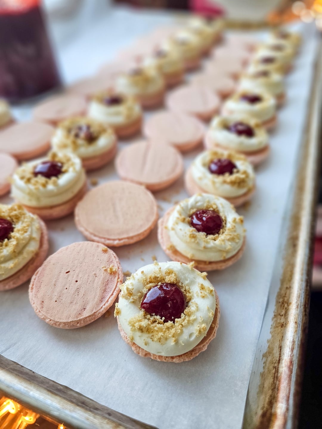 Strawberry Cheesecake Macs with homemade strawberry jam are a Valentine’s day favorite 🩷