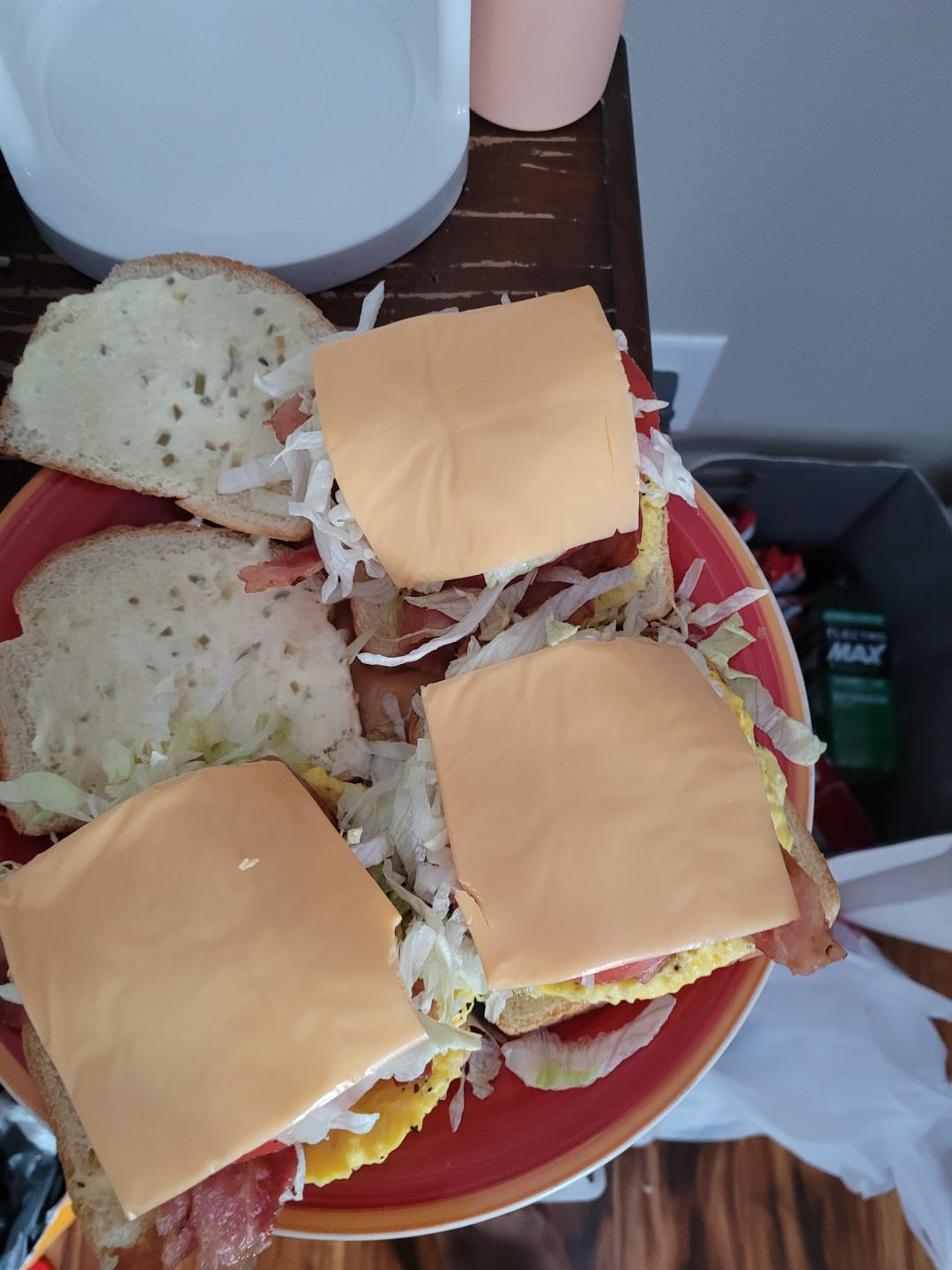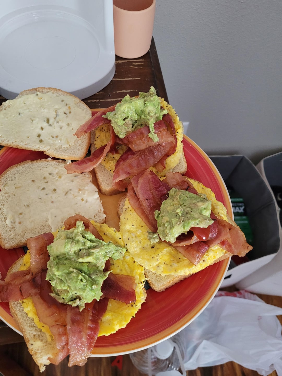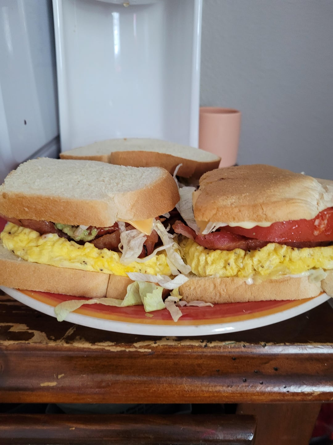 So I was lazy and made these (Bacon, Lettuce, avocado,, tomato, egg) sandwiches in the microwave. super simple I don't think I need to give times and stuff, but if you do let me know. I'm just tired so I kept it simple.