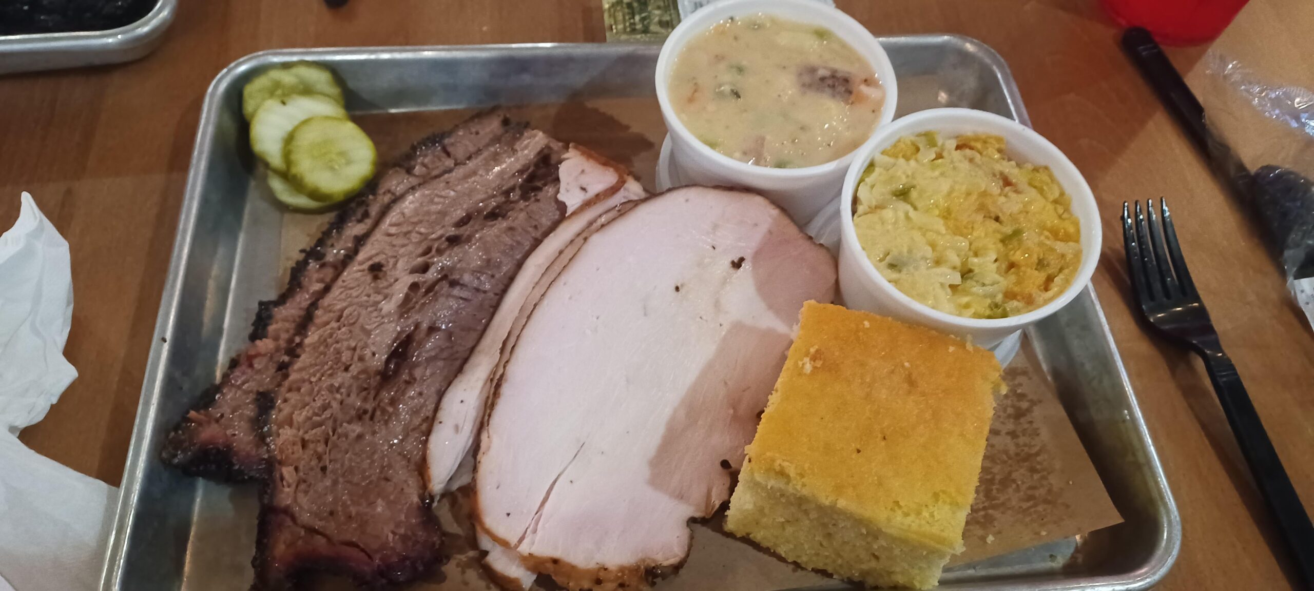 Not bad. Not great either but not bad. Brisket was legit, turkey pretty good. Sides alright. Big ol long hair baked into the cornbread that I pulled out and tossed on the floor. Still prefer Smokey D's bbq over this
