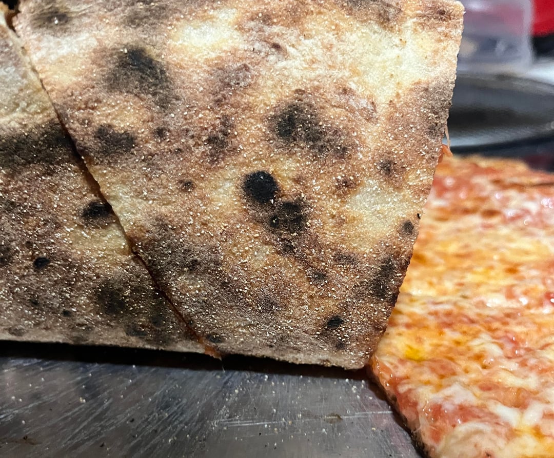 Preheated a 3/8th inch thick baking steel at 550 F for 1 hour
