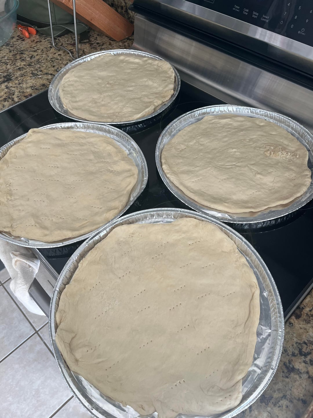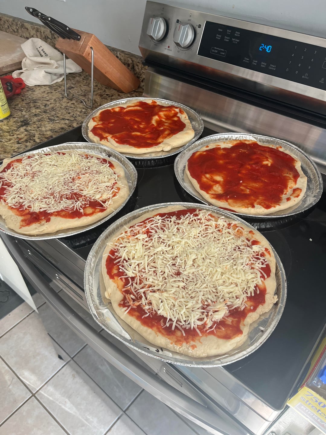 Spent a very light work from home afternoon making some frozen pizzas! (ran out of cheese, but will top when I bake)