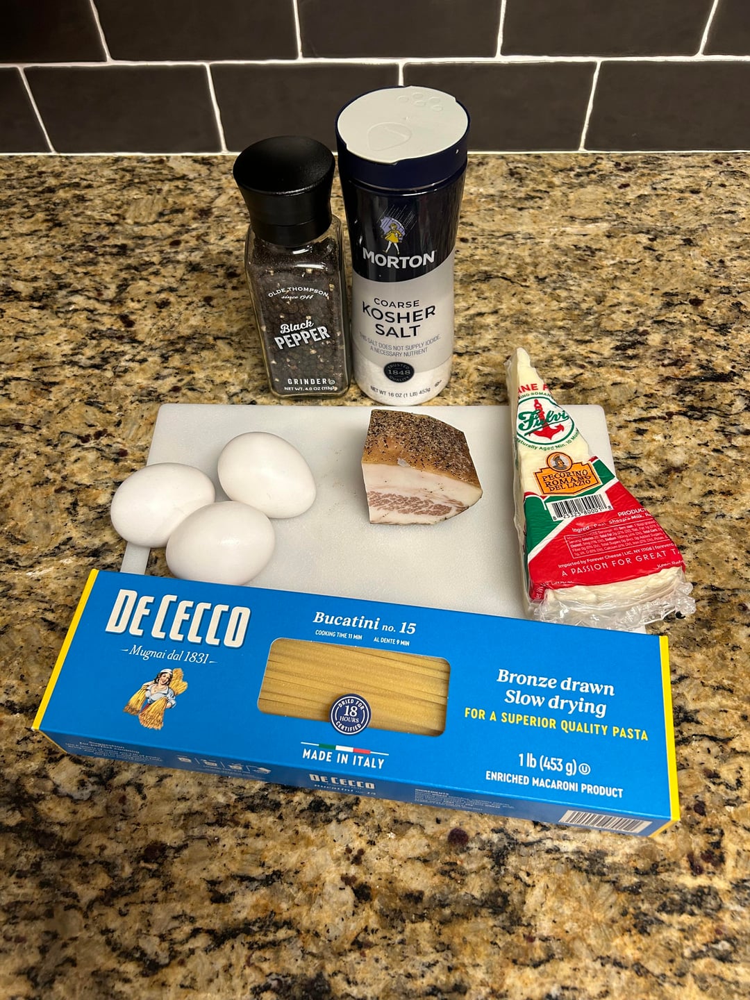 Ingredients: Guanciale, bucatini, pecorino, eggs, black pepper, salt