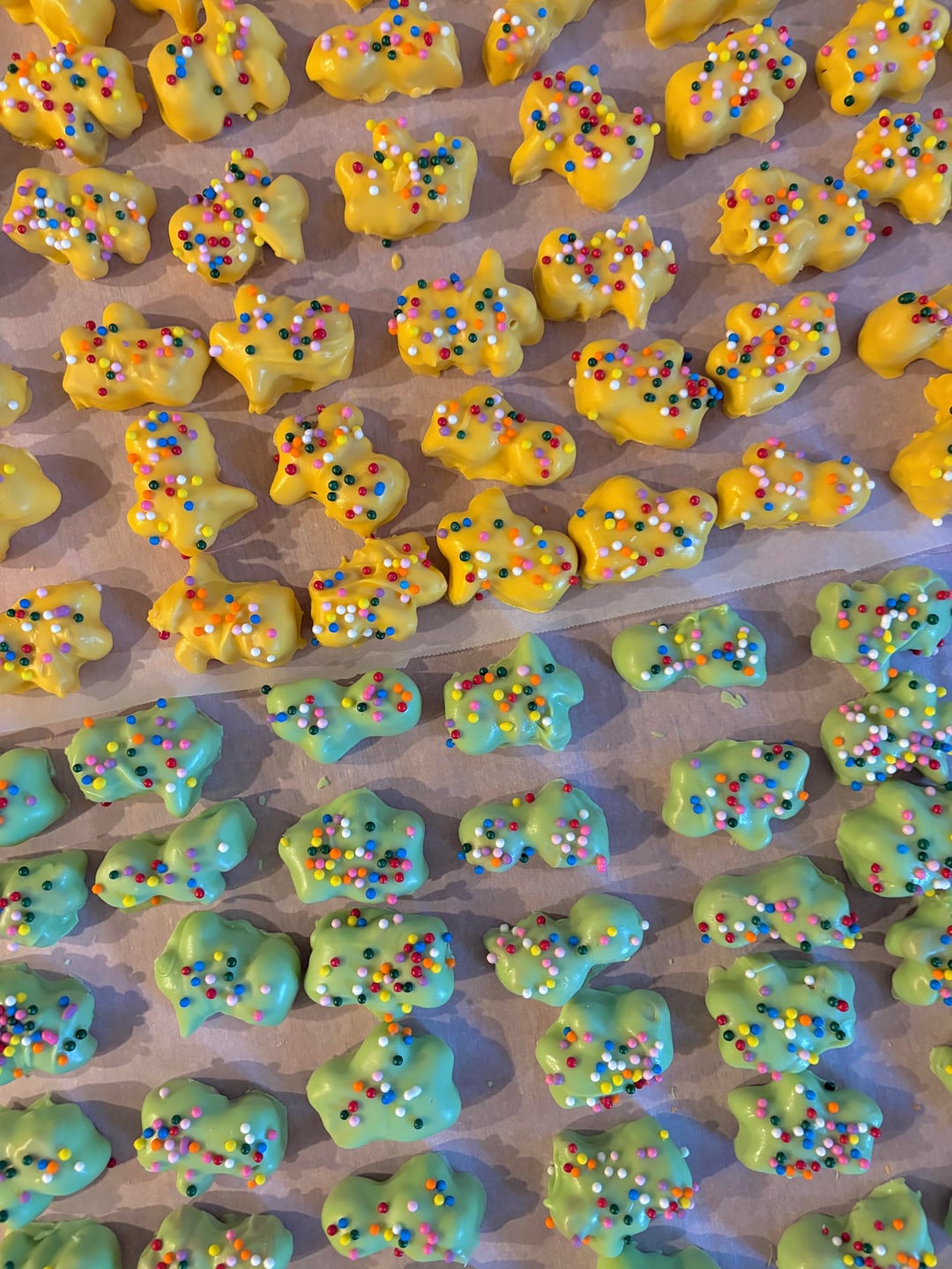 Really proud of the 200 circus animal-esque “dinosaur” cookies I made for my little nephew’s birthday party.