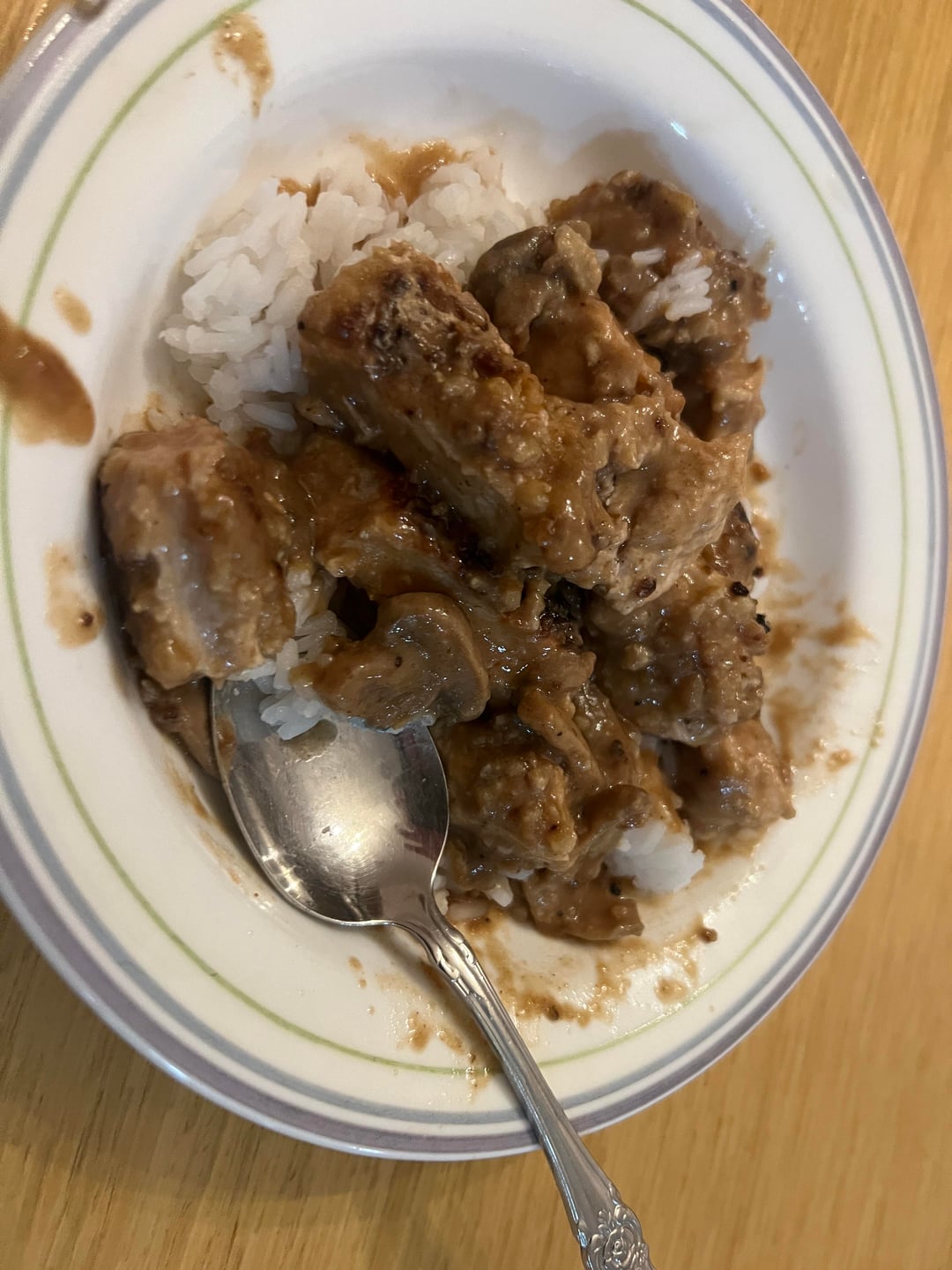 I burnt the first one too much (I think I should've pounded them out some more to be thinner). I used canned mushrooms for the sauce but made the gravy myself with butter/flour