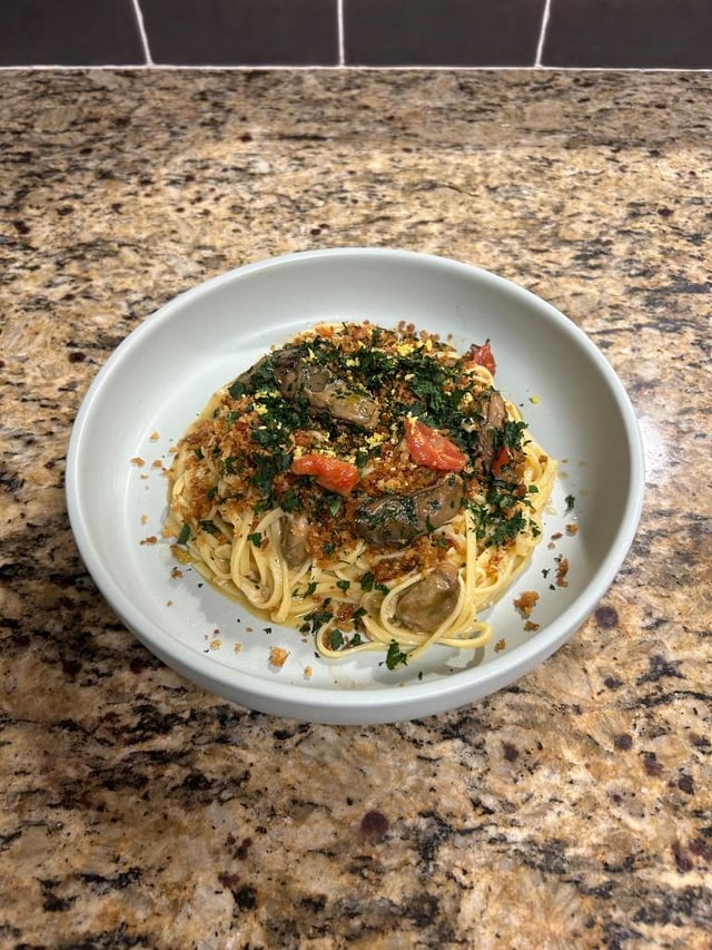 It’s basically the same thing you would do with mussels but using oysters instead, seems convincing to me but not sure if canned oysters are any good. I think my nonna would approve 😀