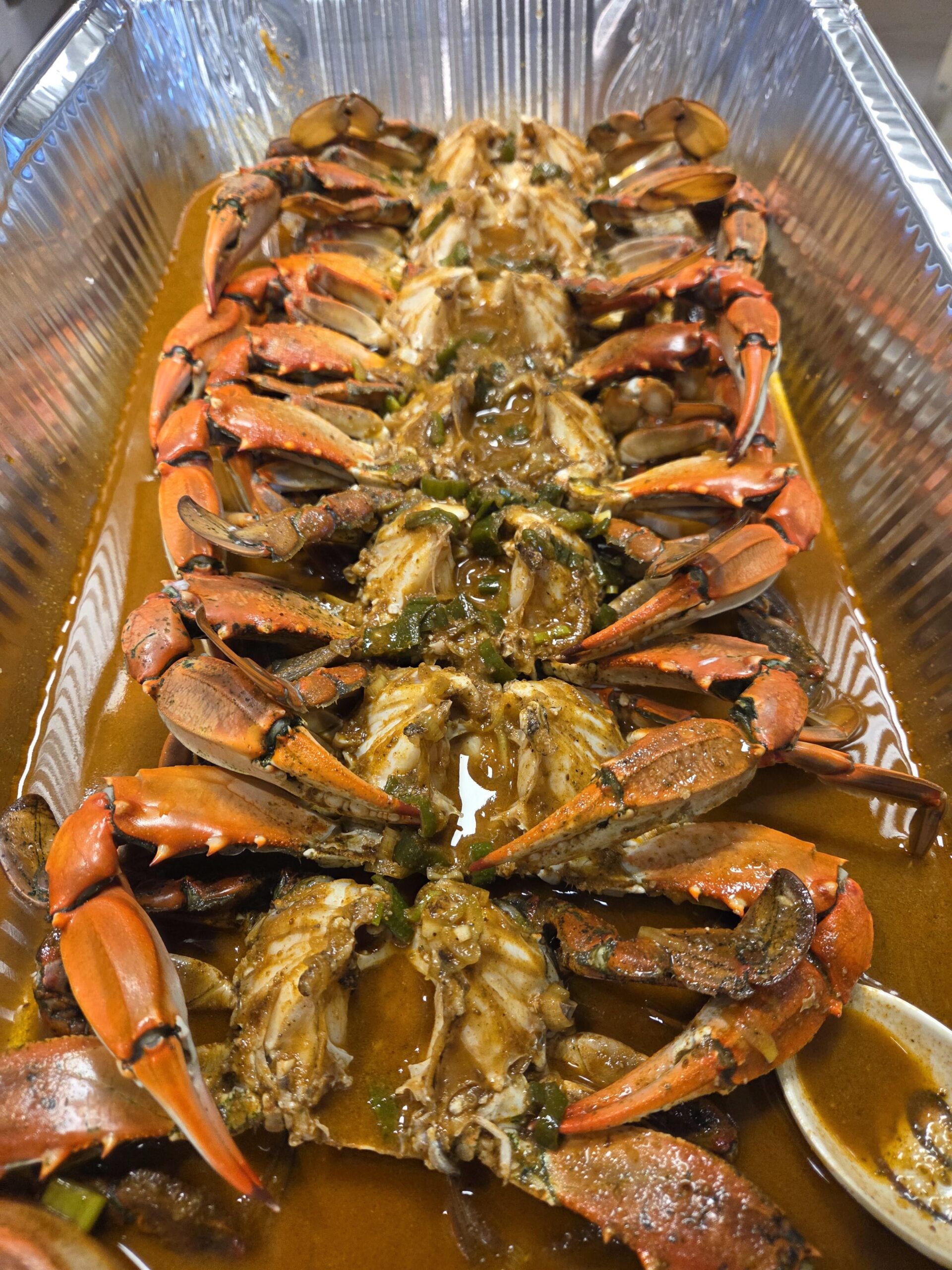 Went to pick up my lobsters for VDay and they had live blues, couldn't resist. Hot water until they floated, cleaned and sauced (yuengling, butter, old bay, meat church seafood seasoning, 2 garlic cloves, green onion)