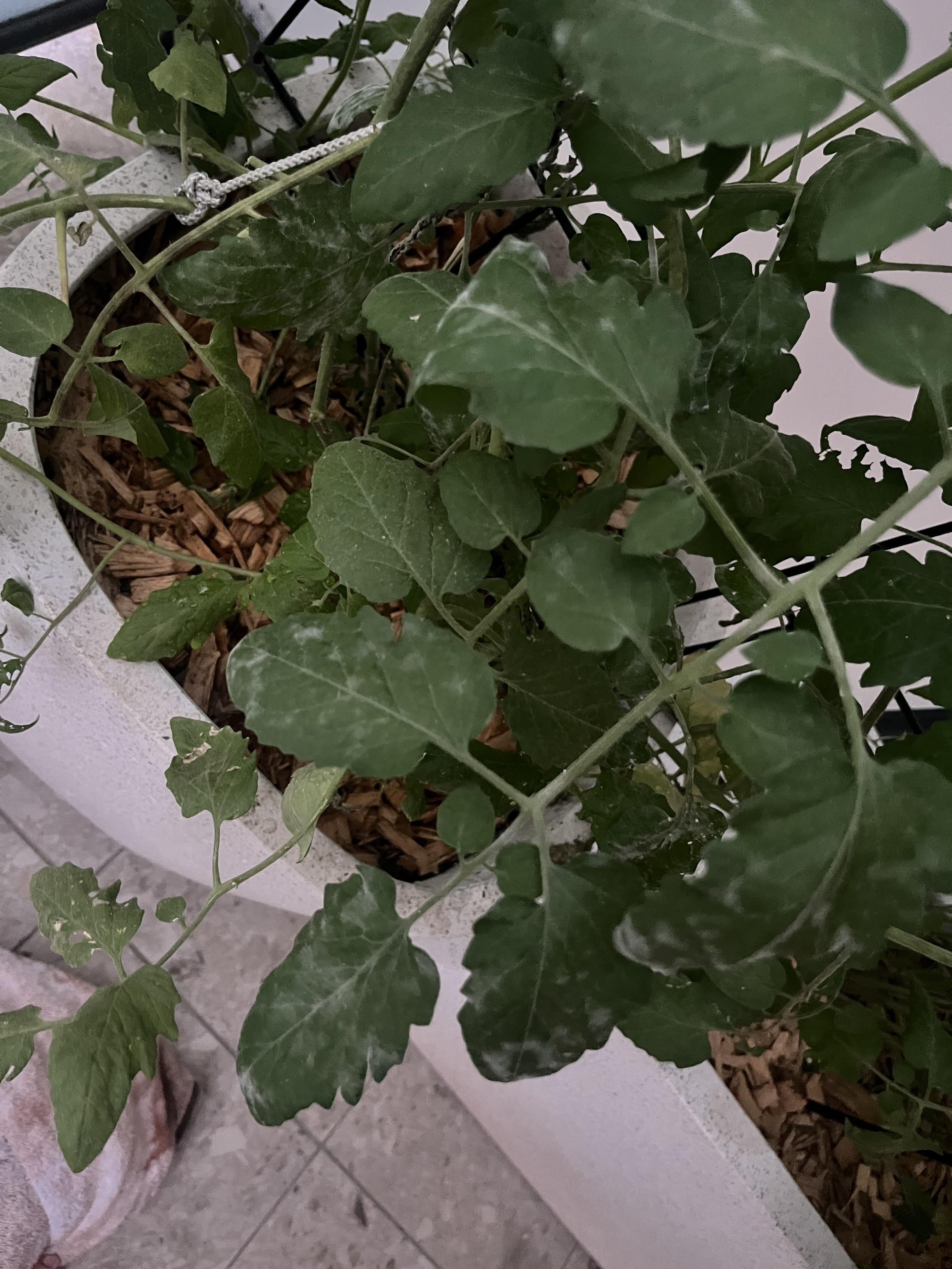 Hello tomato friends in the last couple of days my tomato plant has developed these white spots on the leaves, they’re easily rubbed off but it’s spreading.