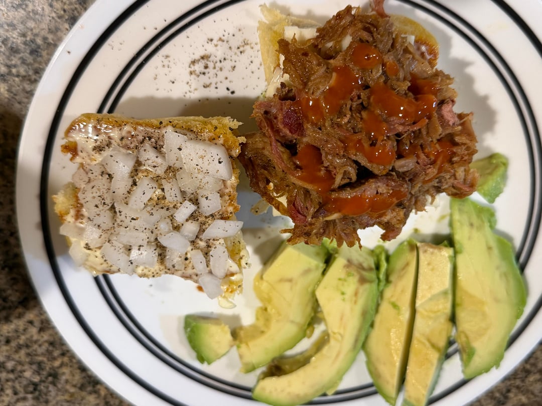 Pulled pork sliders à la Jen. (I am Jen, I don’t know why this is so confusing, it’s in my username!) I also made beans but they’re not on my plate because I don’t eat them.