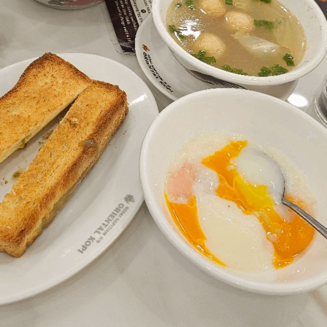 Traditional Asian breakfast: Toast + soft boiled egg