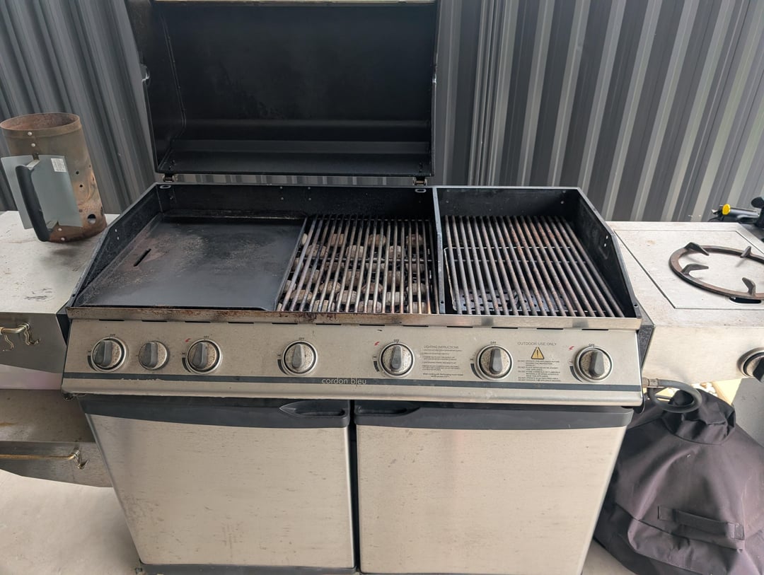 If I’ve understood correctly from your photographs, the inlet for your propane sits right below your charcoal box. If using both charcoal and gas at the same time, this is a RISK, despite a nice looking charcoal box adding an extra layer of protection. Chicken, especially fattier parts like thighs, will create a flare and with no lid – tricky to put out. Could get out of hand and before you know it, you’ve grilled a lot more than just chicken! One advantage you have got going for you is that the charcoal box looks like it can easily be removed. Removing it and placing a cover on top will snuff it out eventually and possibly save some charcoal for your next gig. May I ask, why not invest in a second-hand kettle, keep things simple, remove any risk, and enjoy the pleasure of charcoal cooking with a kettle?