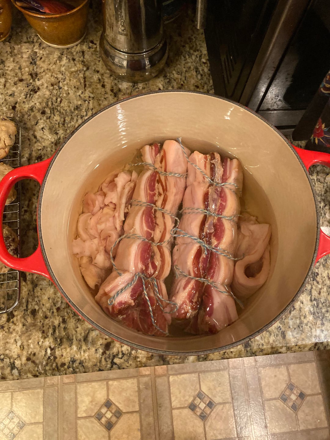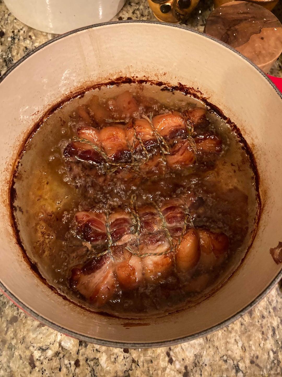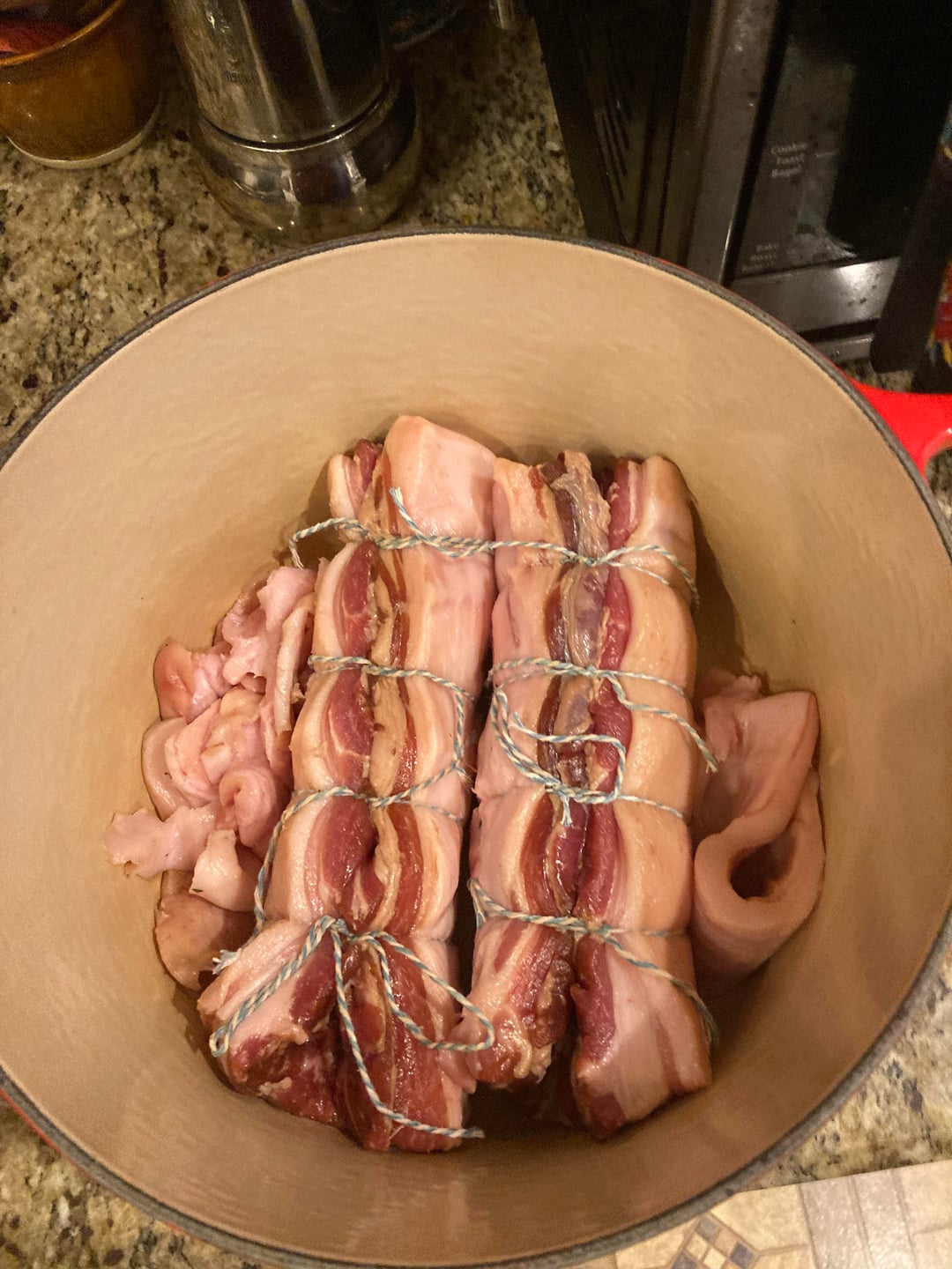 Hopefully this counts since I will be using it in ramen in a few days! I was inspired by home cooking methods for carnitas, so I trimmed it, cooked it in oil at 275 for 4.5 hours, then roasted at 500 for 10 minutes and broiled for 2 minutes and it was amazing. Juicy, tender, with little crispy bits