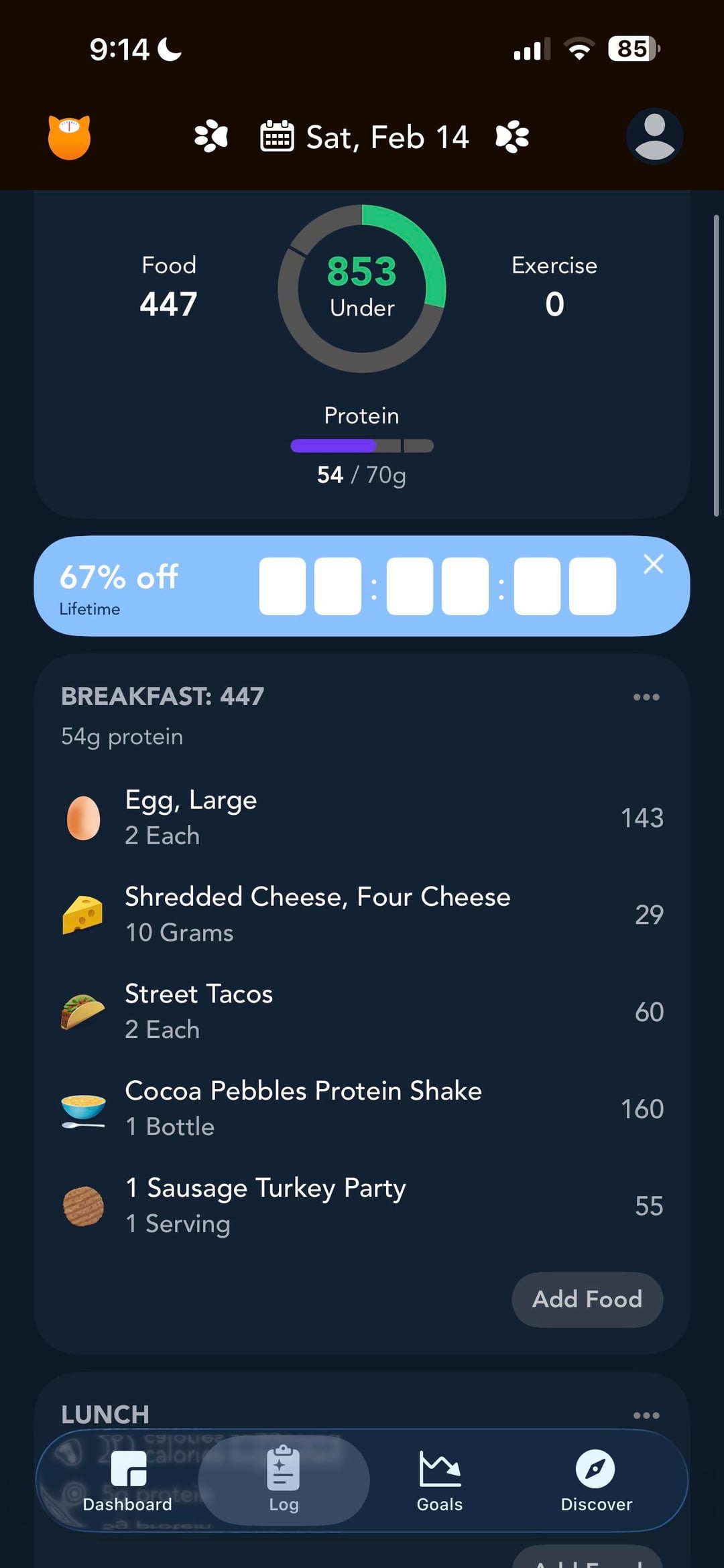 -Dymatize Cocoa Pebbles protein shake (160 cal)